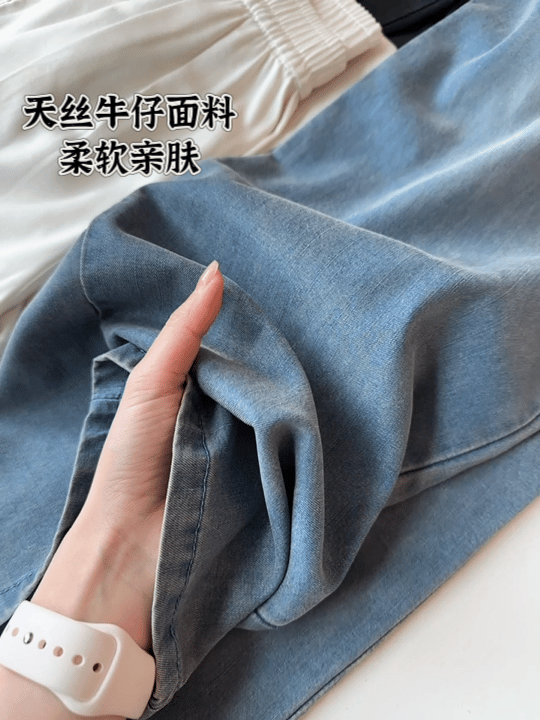 这次特地选了天丝面料(莱赛尔纤维)牛仔裤,它比普通牛仔裤薄四倍,这种又轻又软的牛仔裤就很适合夏天穿~
