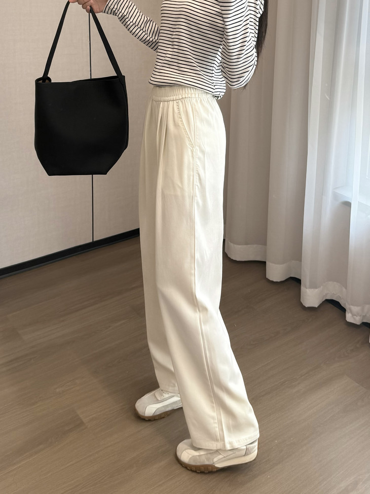 关键面料又垂又顺,所以裤身整体走线也很流畅,一眼望去,哇塞,这腿也太直了吧!