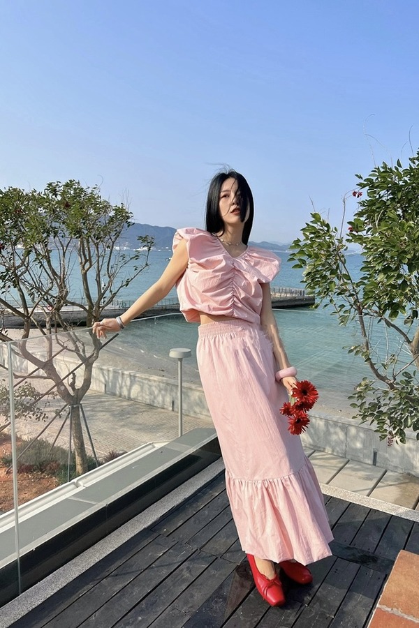 ANSUABEL 宽松皱褶上衣半裙套装 18054