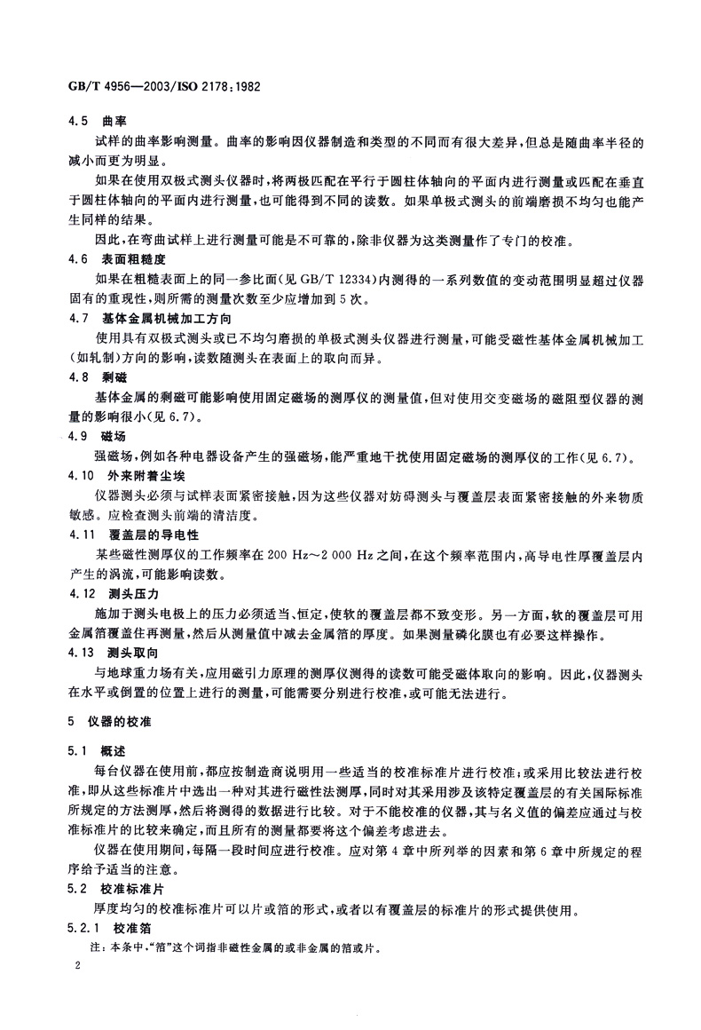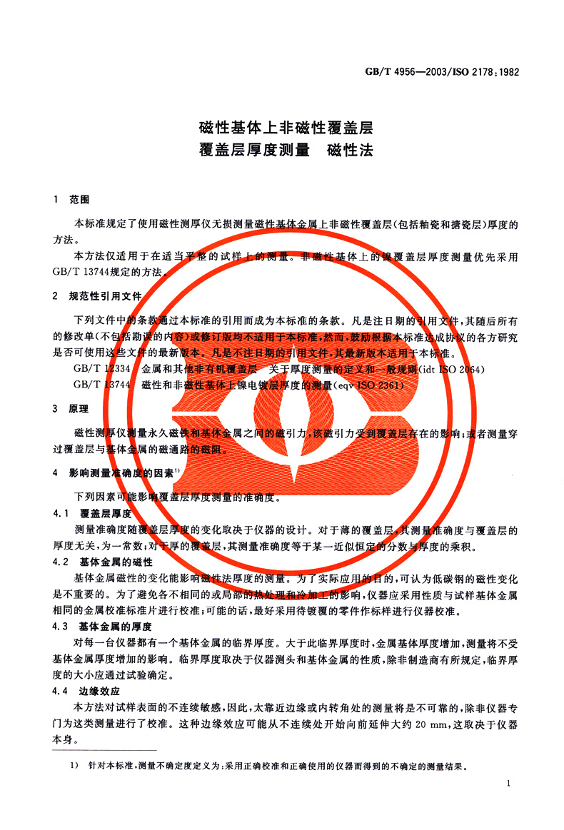 | GB/T 4956-2003 磁性基体上非磁性覆盖层 覆盖层厚度测量 磁性法 | ||