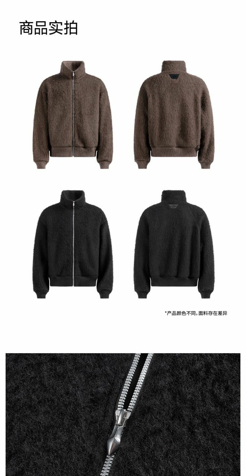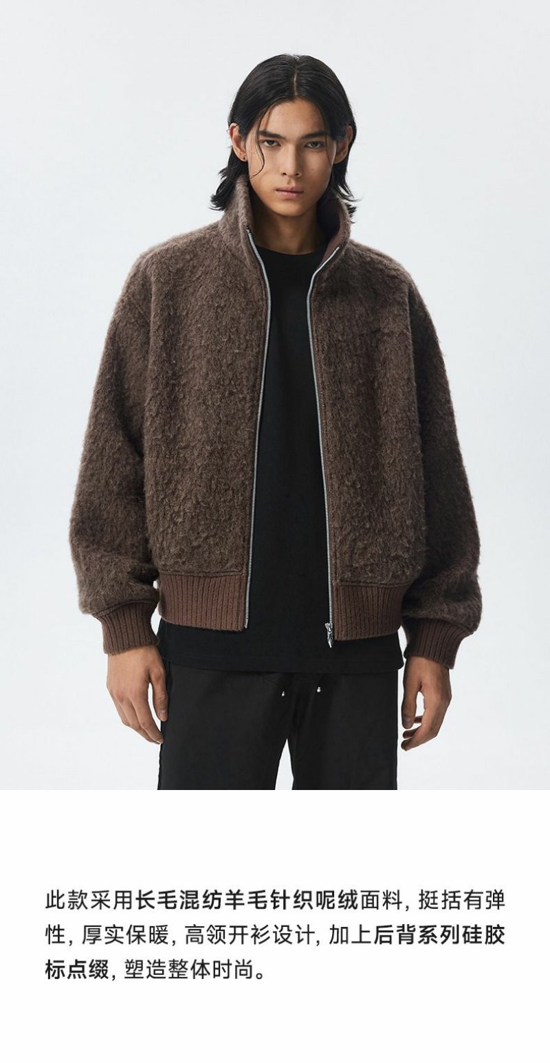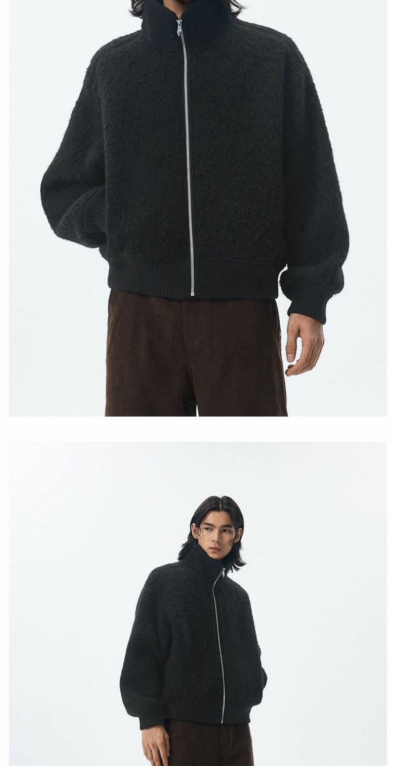 CHINISM赤尘 羊毛针织呢绒毛呢外套男秋冬季加绒加厚立领保暖夹克 商品图0