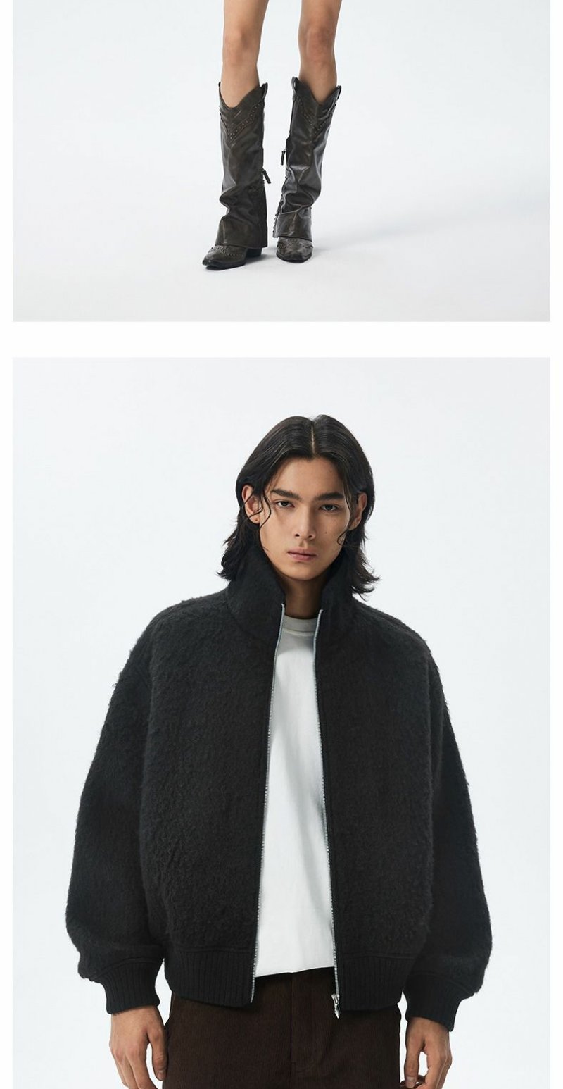 CHINISM赤尘 羊毛针织呢绒毛呢外套男秋冬季加绒加厚立领保暖夹克 商品图1