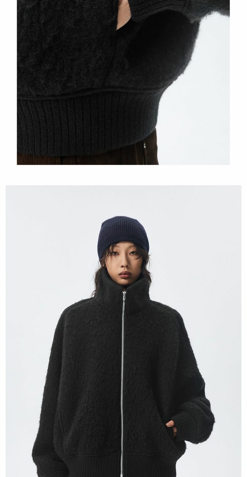 CHINISM赤尘 羊毛针织呢绒毛呢外套男秋冬季加绒加厚立领保暖夹克 商品图3