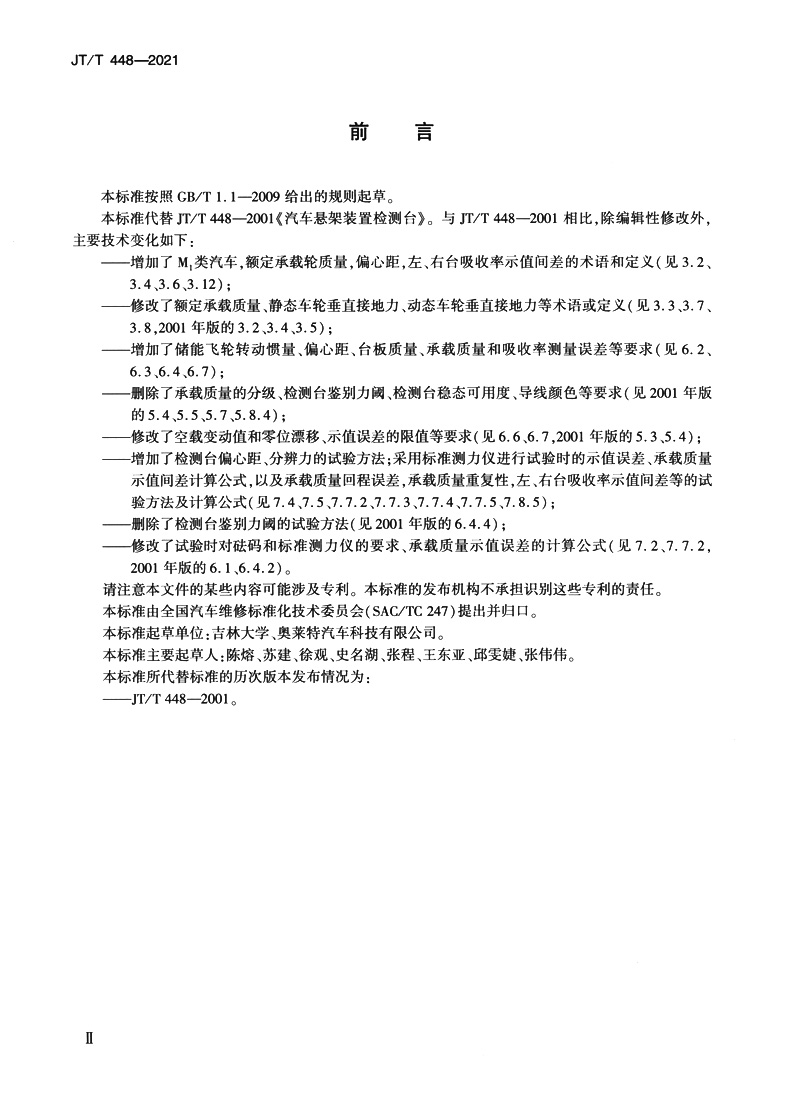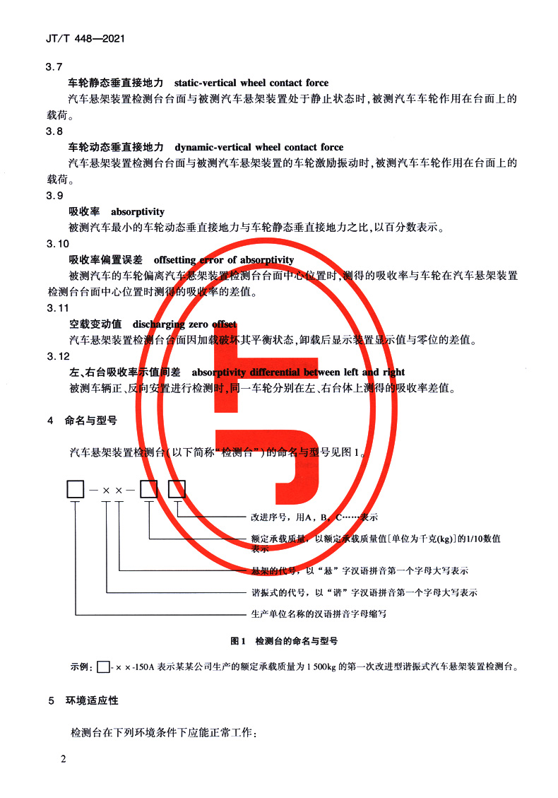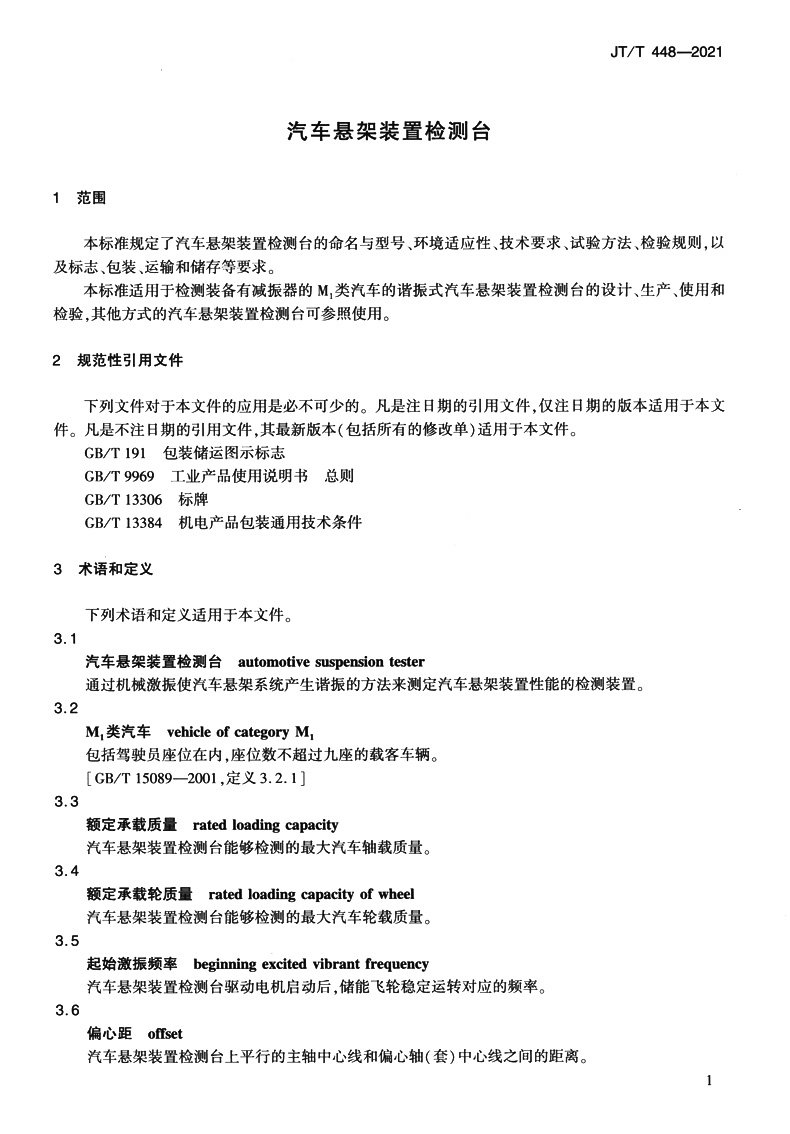 | 汽车悬架装置检测台(JT/T 448—2021) | ||
