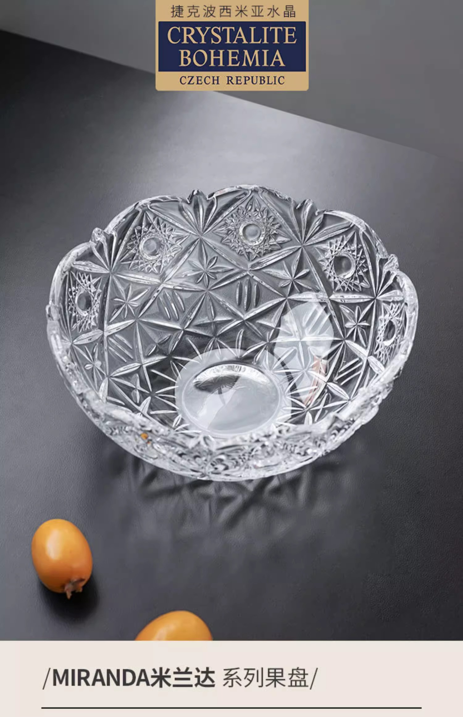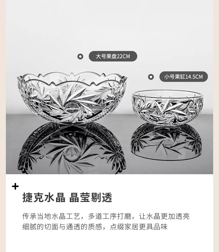 捷克进口BOHEMIA 水晶玻璃水果盘 客厅茶几果盆欧式复古果斗果碗波西米亚风车果斗22cm带盖糖缸15cm