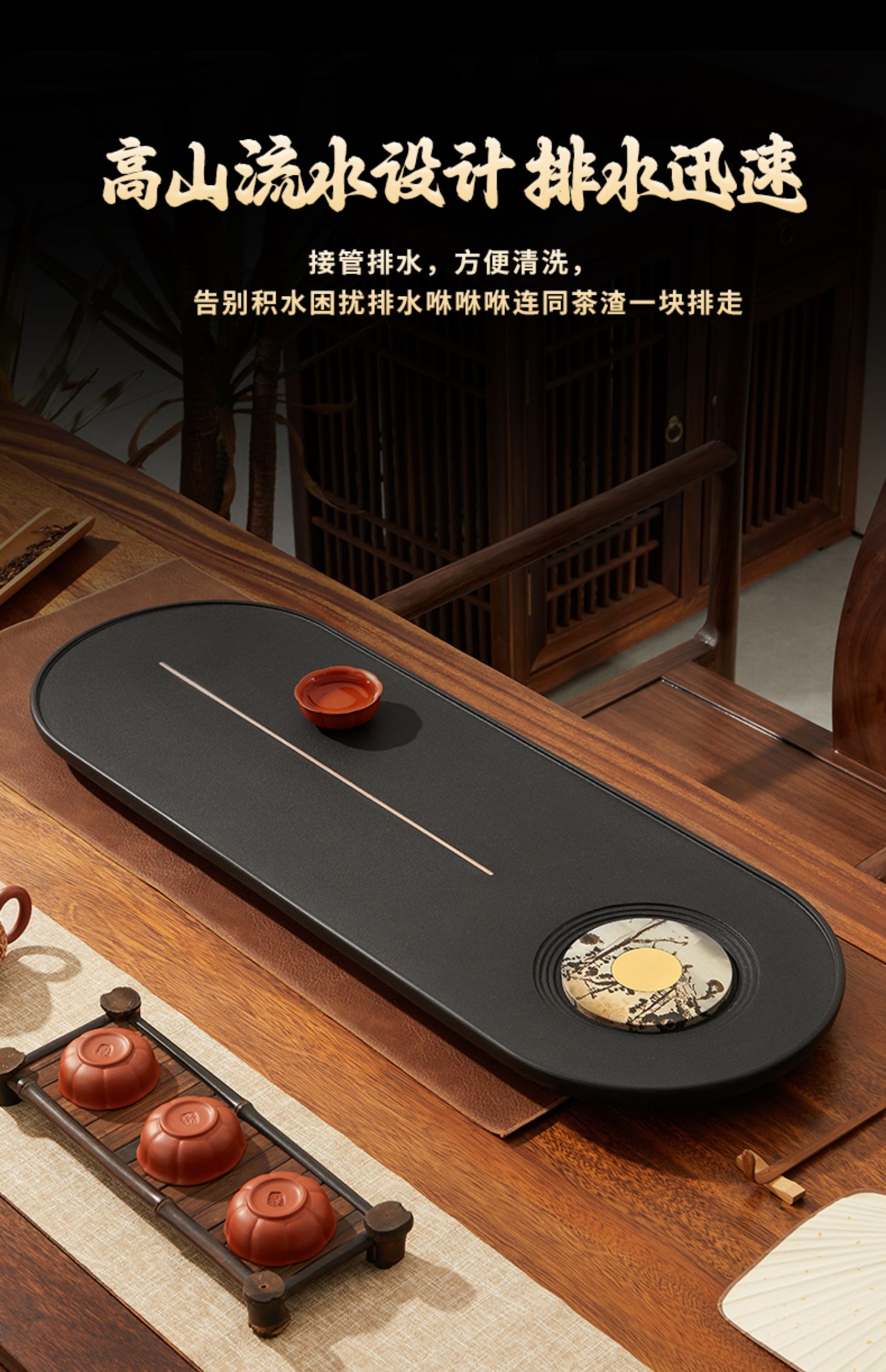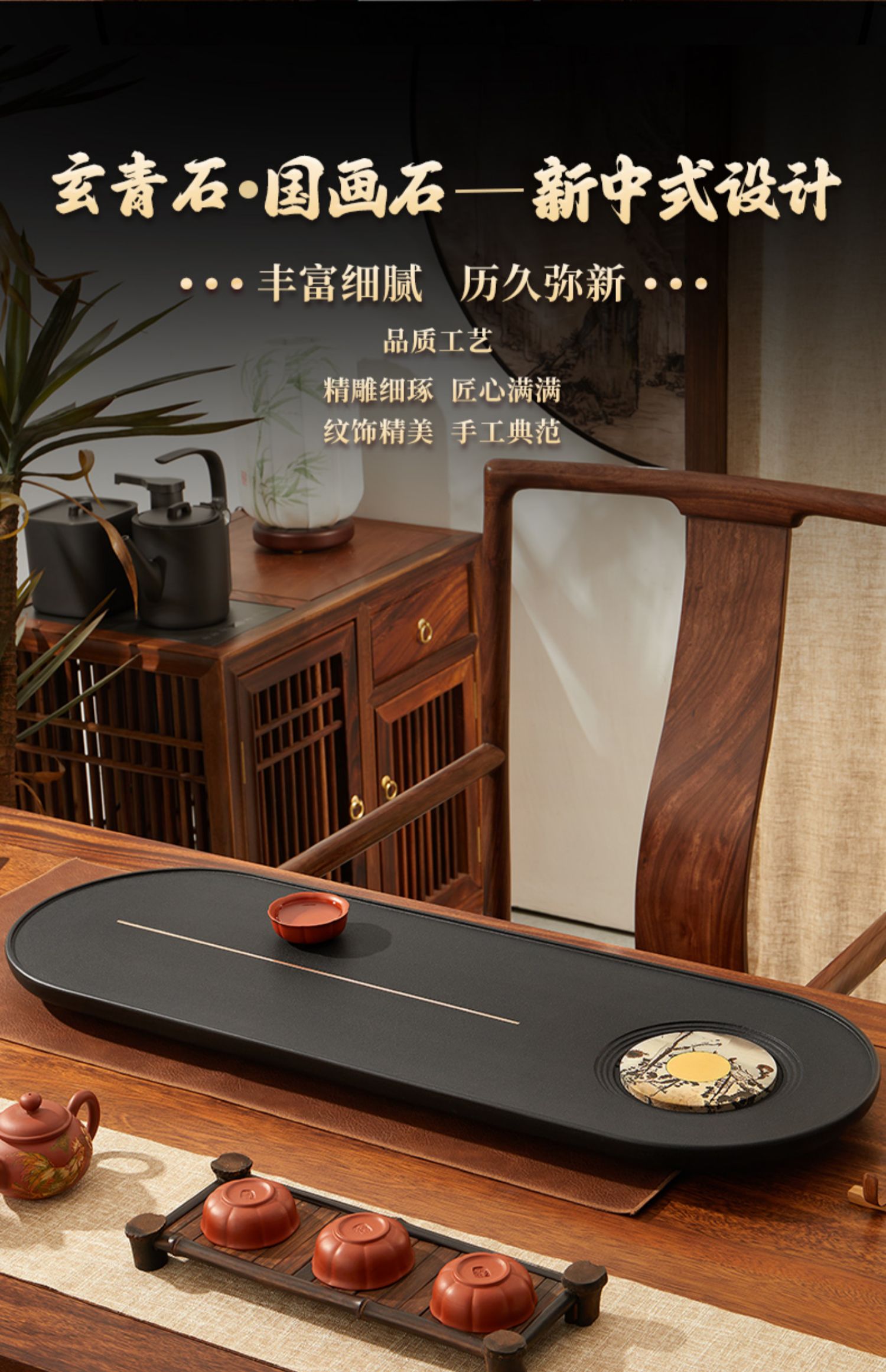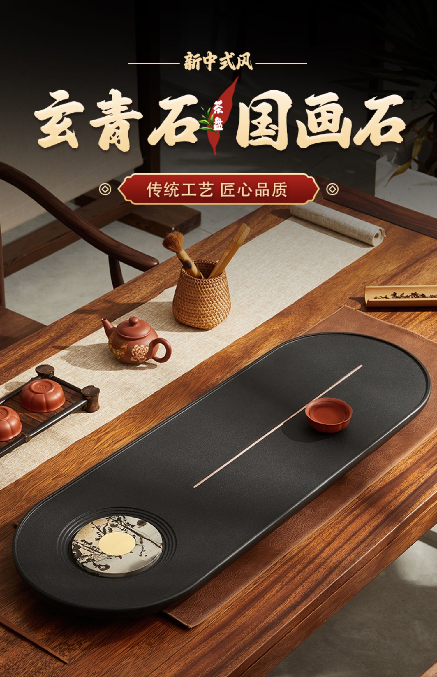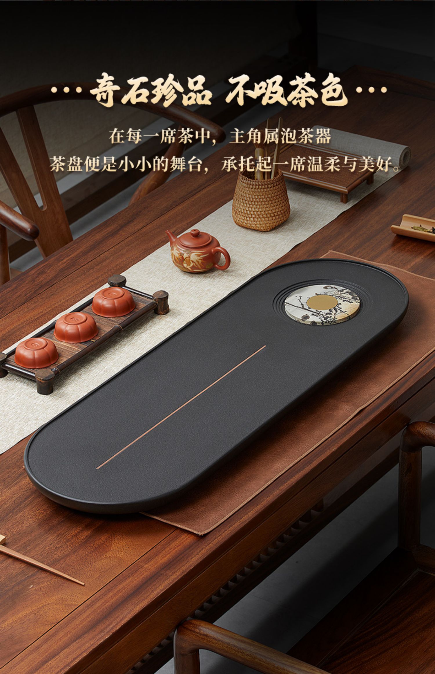【样品清仓4折】锦绣-风顺高端天然玄青乌金石头茶盘家用简约茶具托台新中式(约80*28)