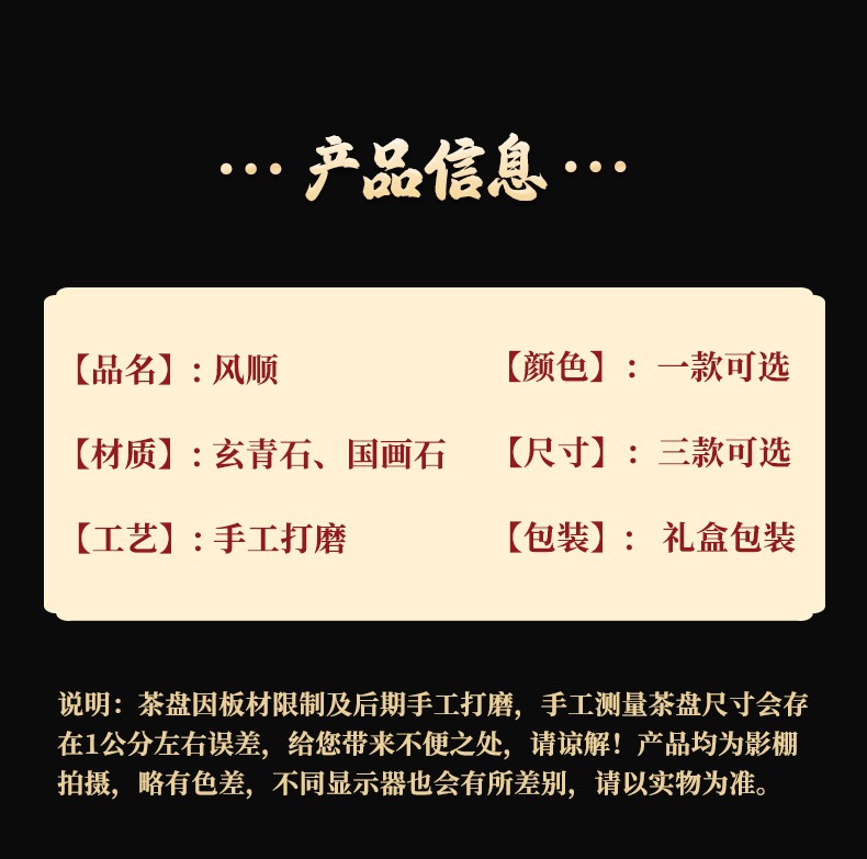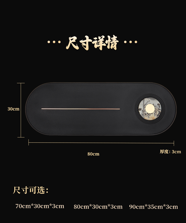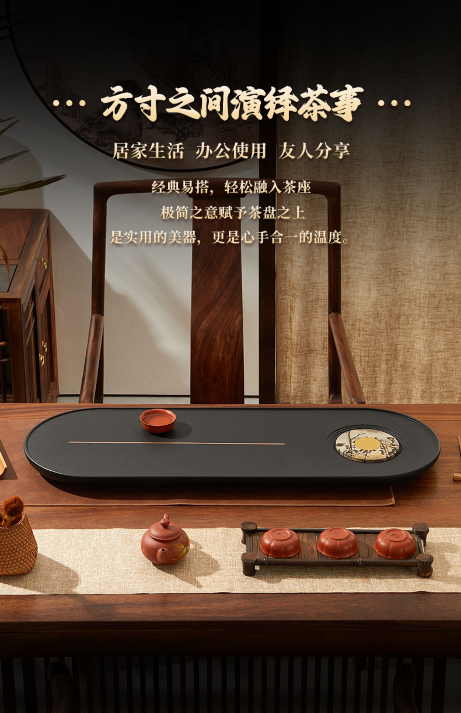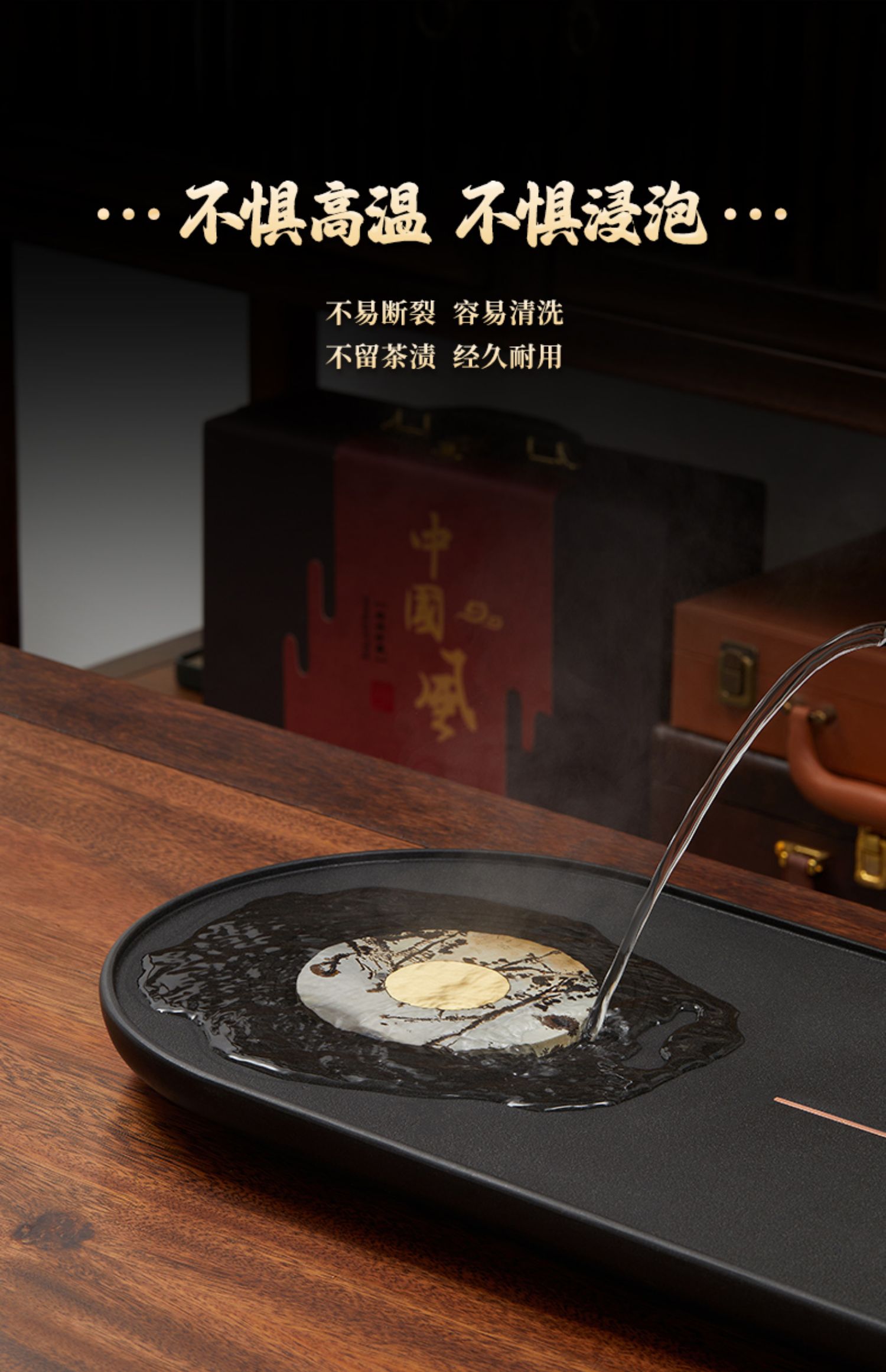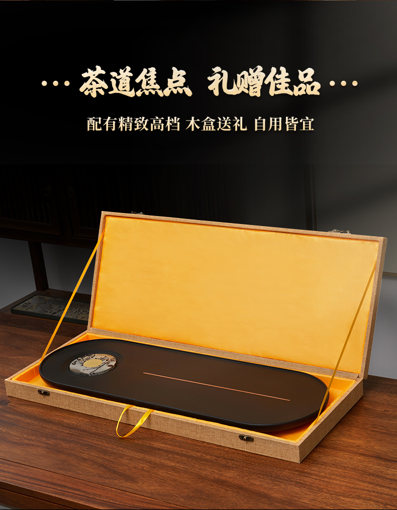 【样品清仓4折】锦绣-风顺高端天然玄青乌金石头茶盘家用简约茶具托台新中式(约80*28)