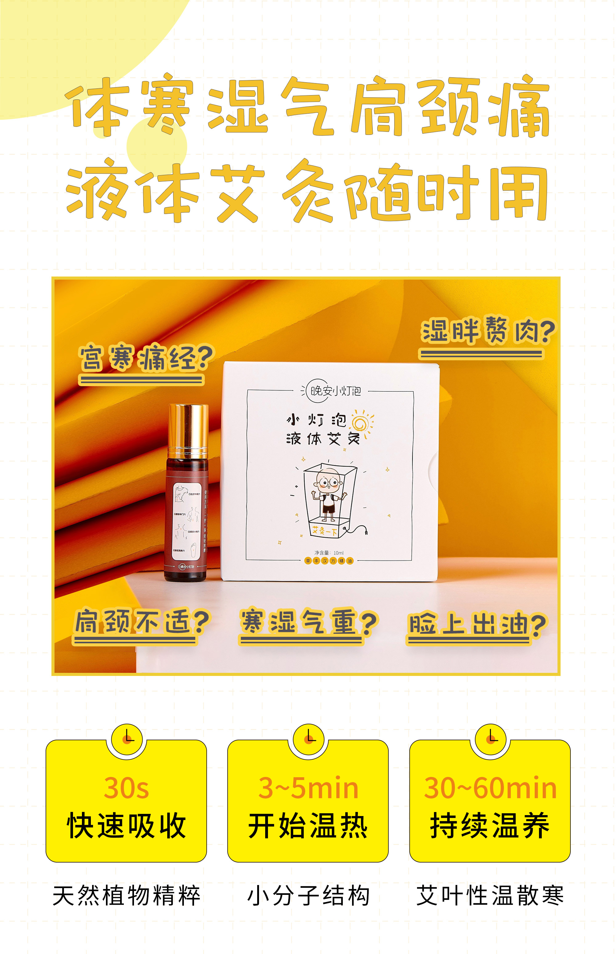 【晚安小灯泡液体艾灸 买2送1】随时随地 即刻艾灸 无烟无火 蕲艾精华 小分子高渗透 | 适合夏季祛湿气 宫寒痛经 肩颈酸胀