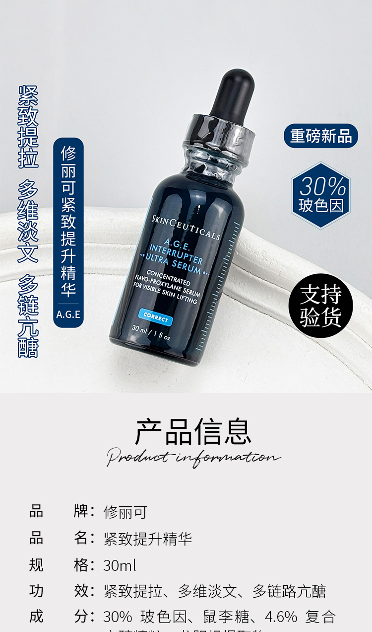 新品 修丽可紧致提升精华液 age精华30ml(正装)