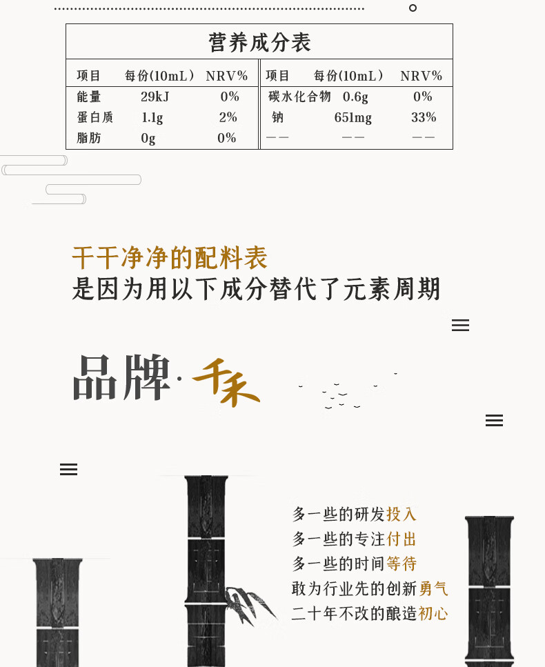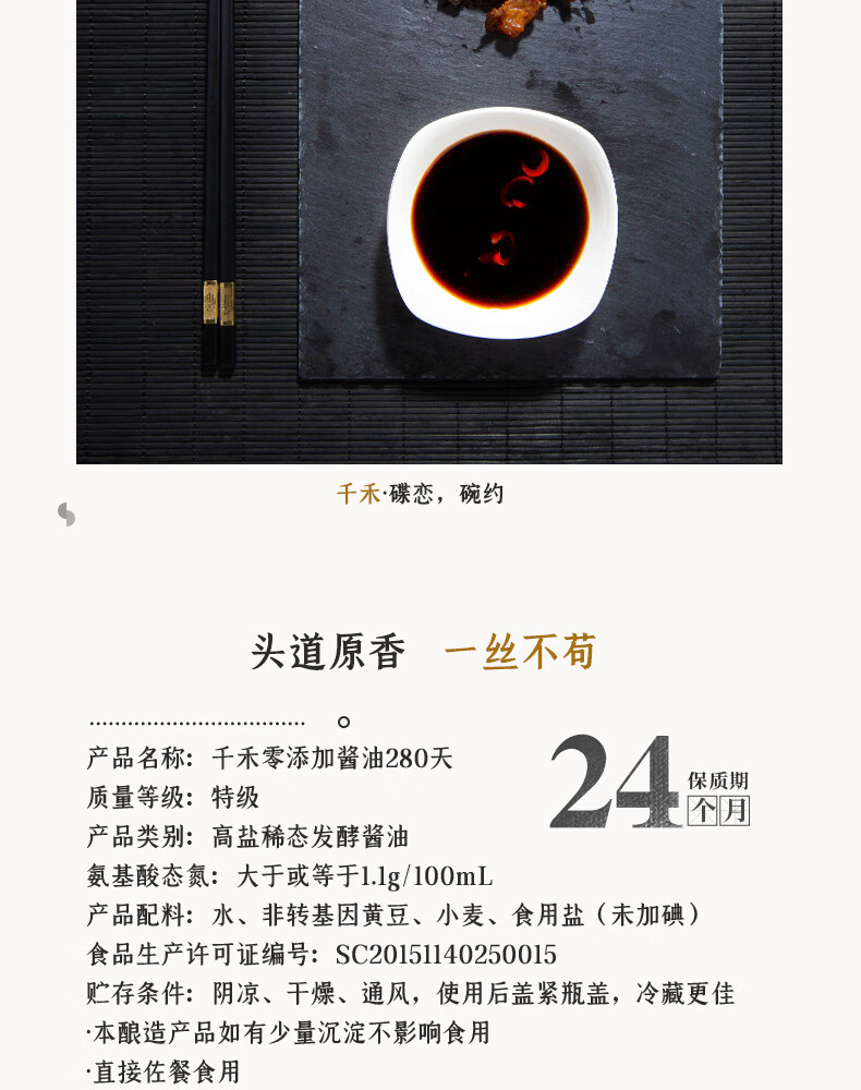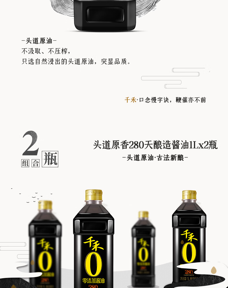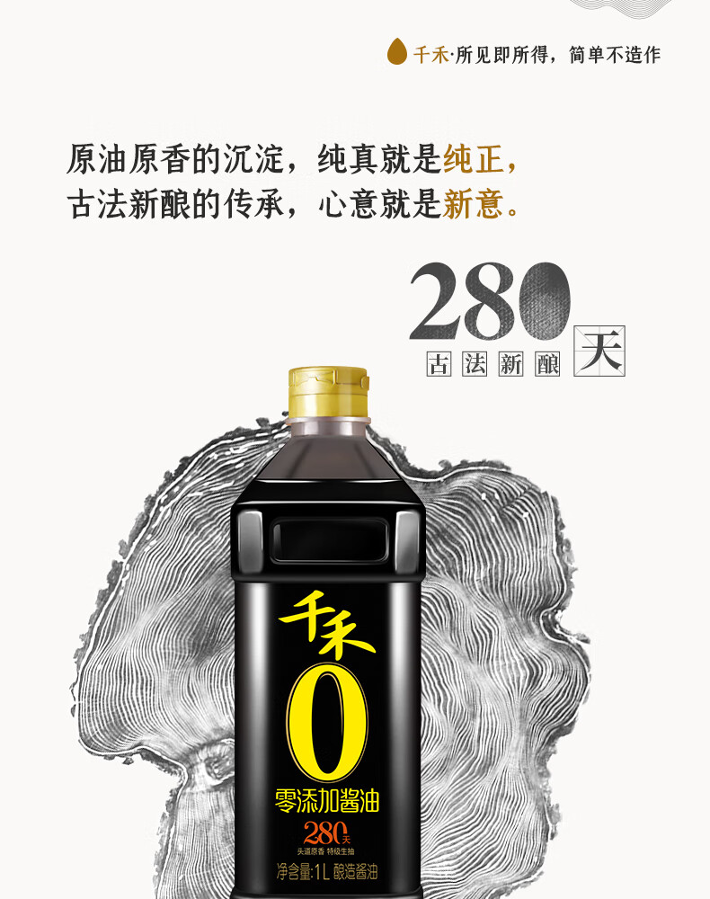千禾 零添加酱油280天(酿造酱油) 1L*2瓶