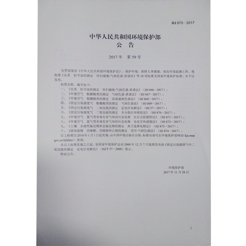 HJ870-2017 固体污染源废气 二氧化碳的测定非分散红外吸收法
