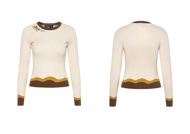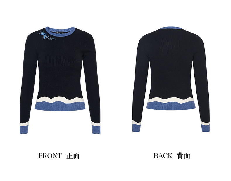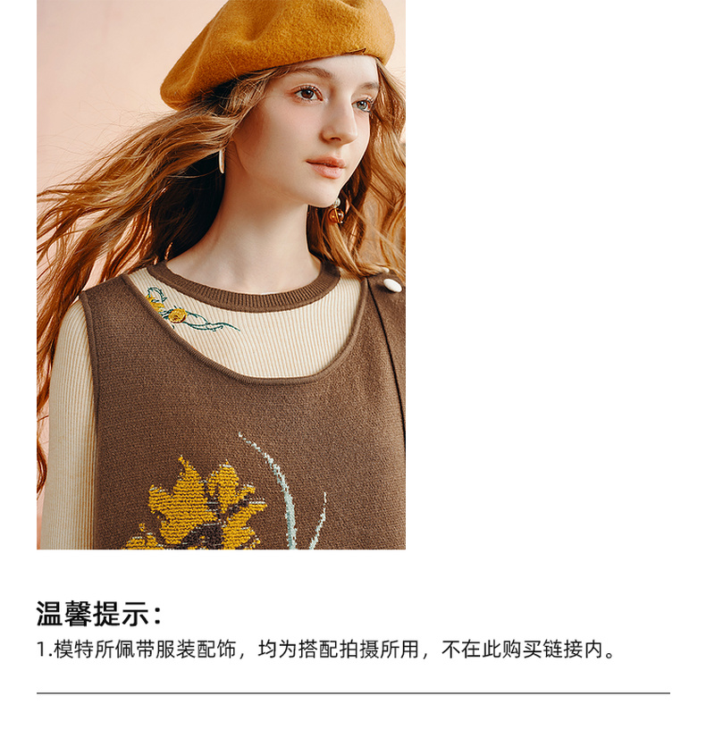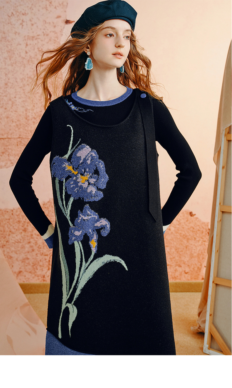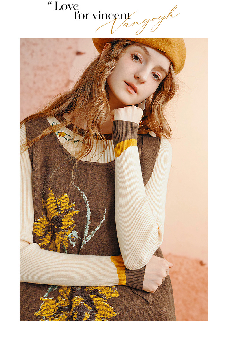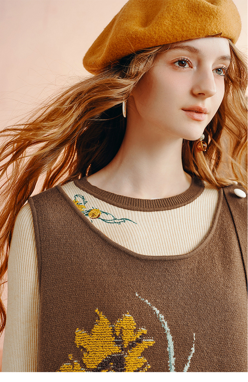 两三事梵高文艺 浪野之秋 2025秋季新款复古绣花拼色打底针织衫女