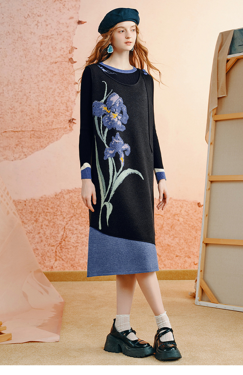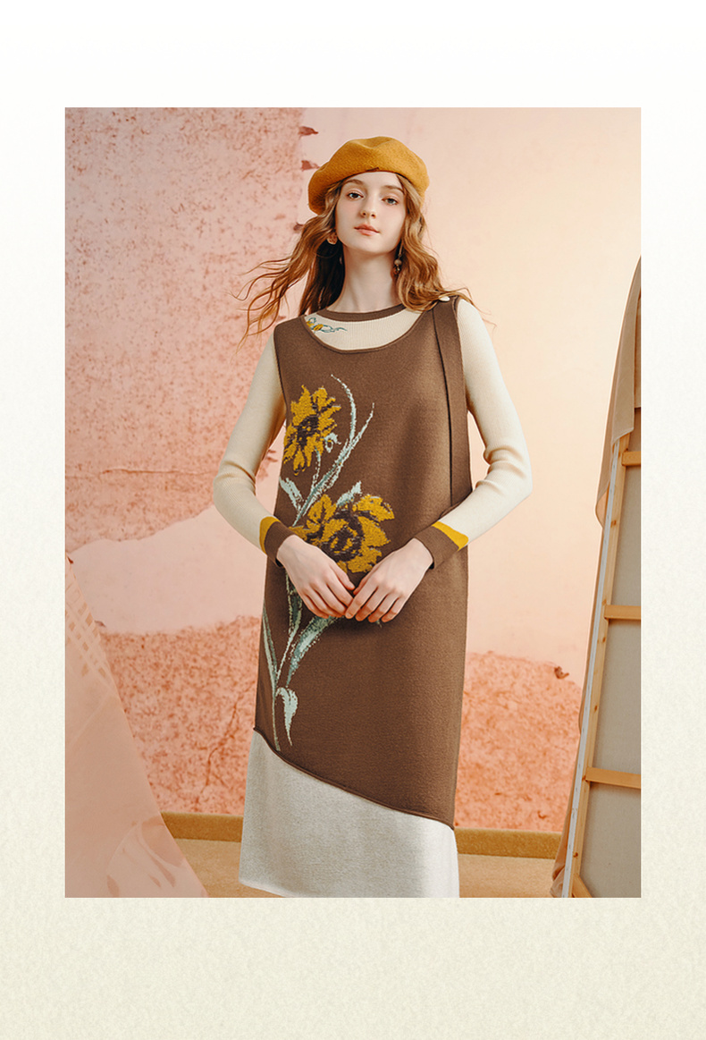两三事 温软入冬 冬季新款简约高领厚款毛织连衣裙长裙