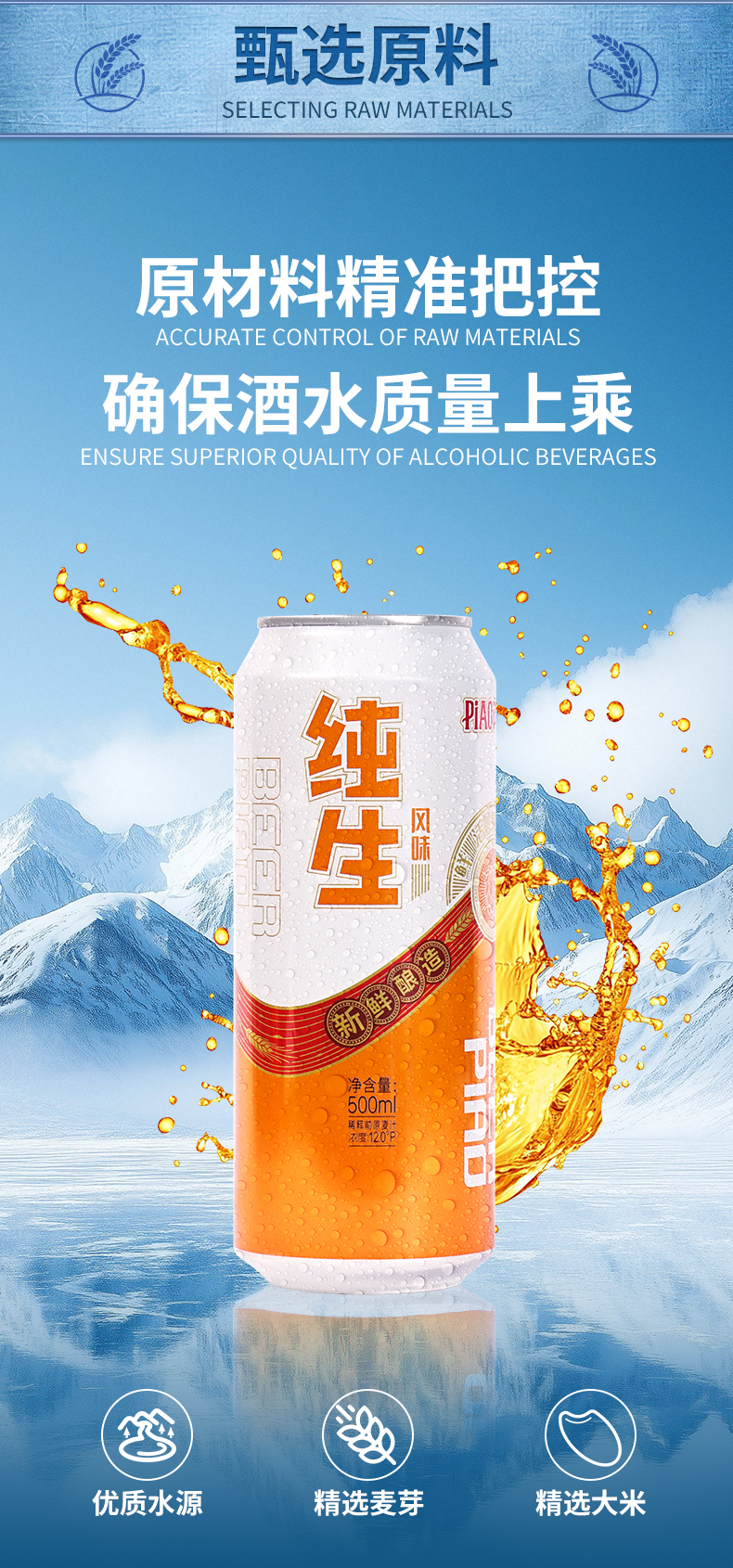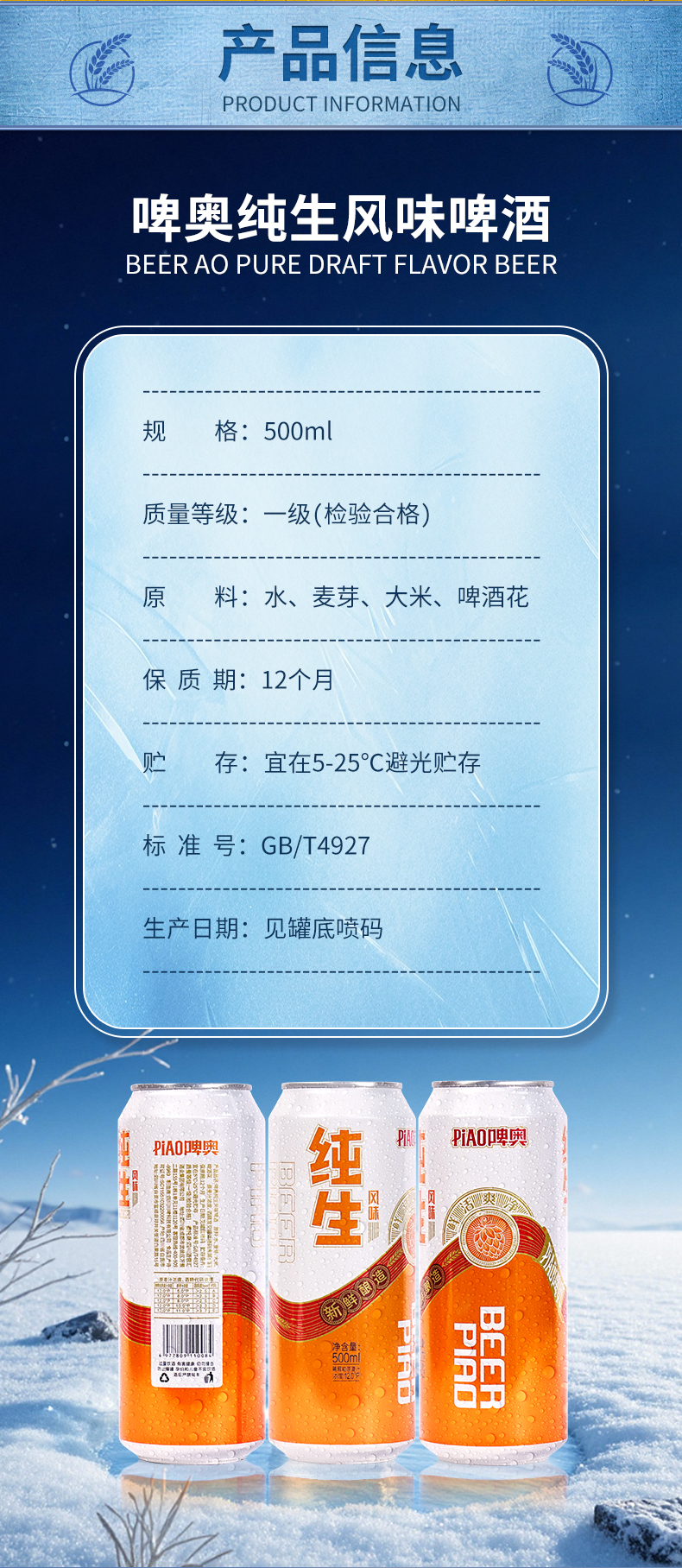 啤奥纯生风味啤酒5度一提500ml*6瓶