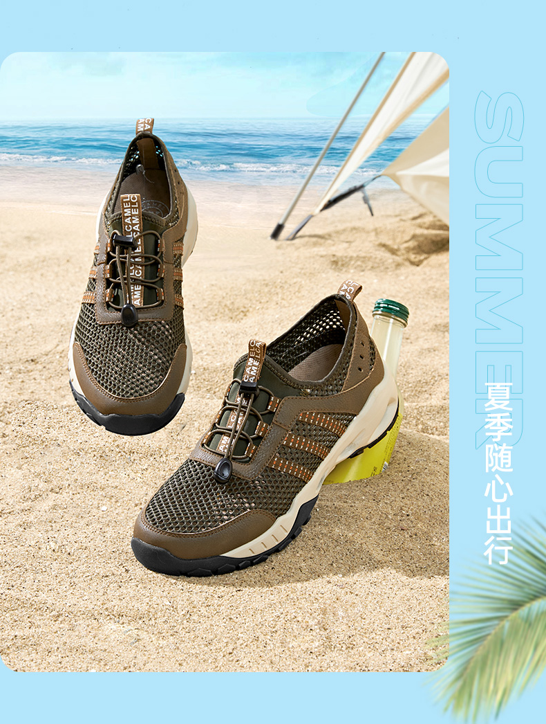 骆驼男鞋2025夏季新款溯溪鞋网鞋男透气薄款一脚蹬户外休闲运动鞋 GMS2210006