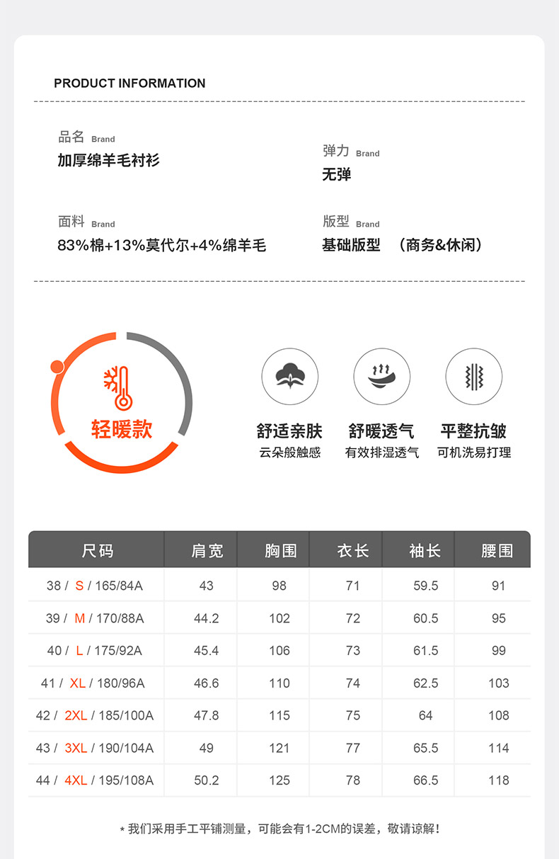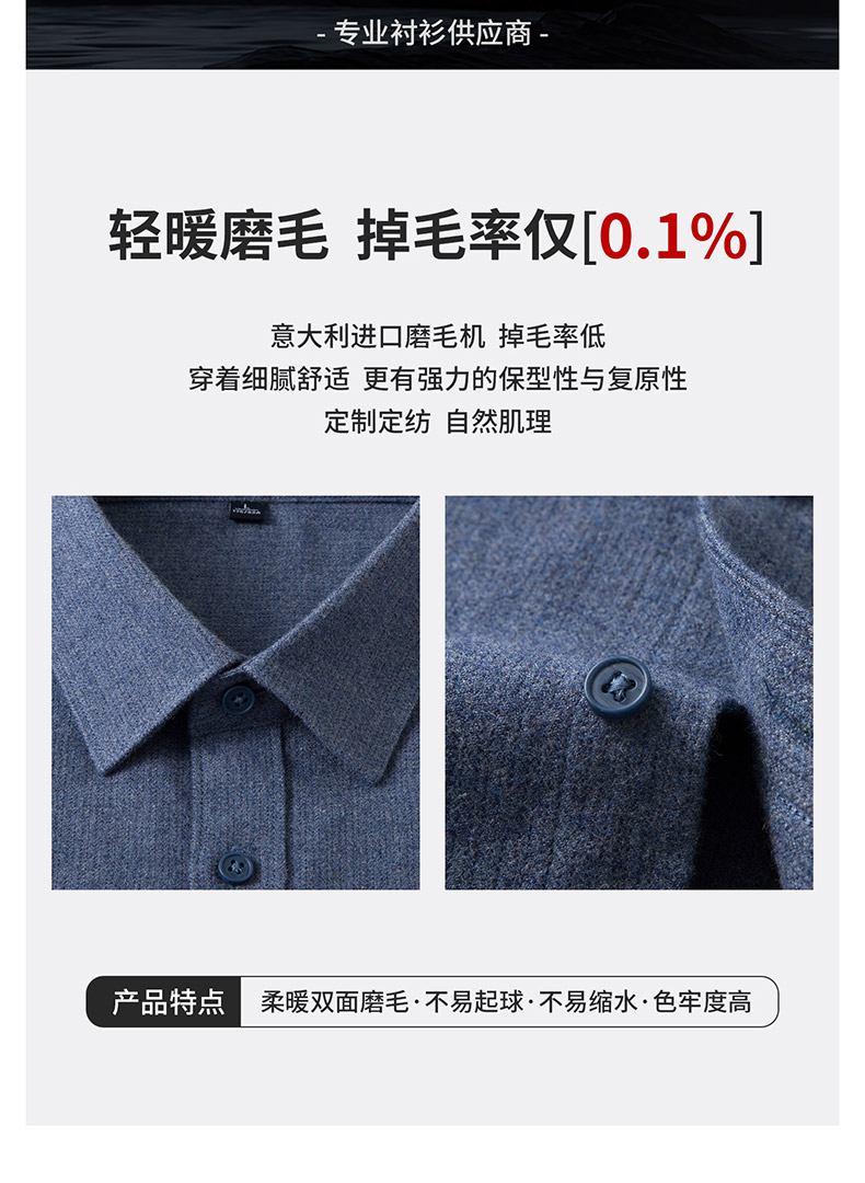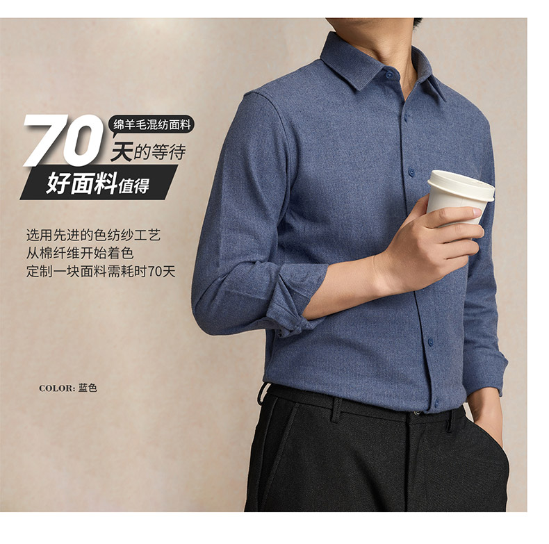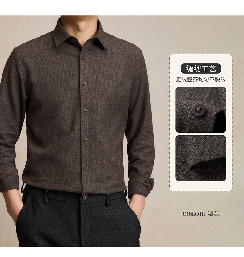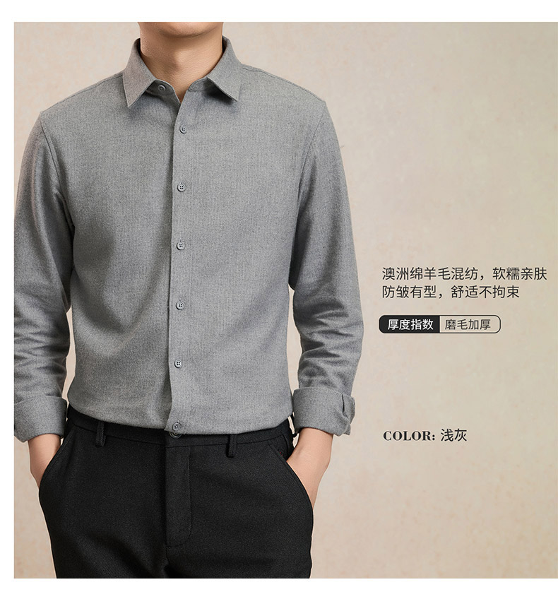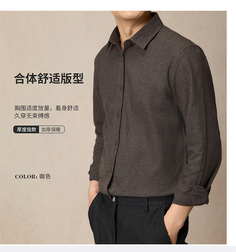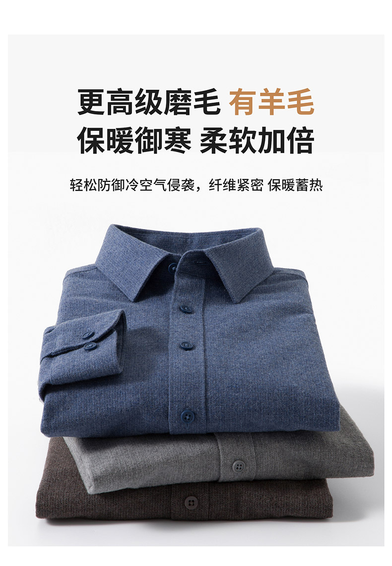 【含羊毛】罗蒙秋冬长袖衬衫男士厚款柔软舒适轻商务风百搭上班通勤长袖衬衣