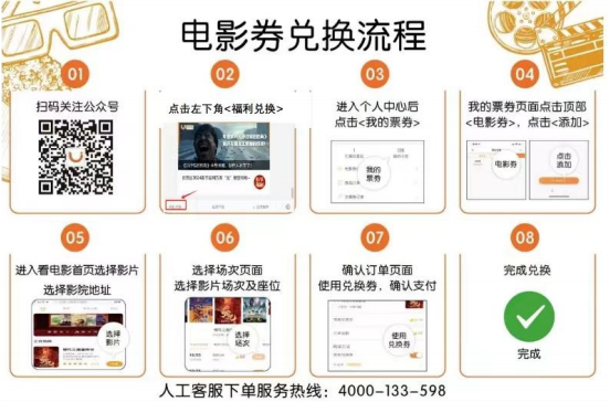 发货方式:将在24小时内采用短信发送账号密码至下单留言手机号码!!!(非工作日顺延至周一发送)电影票兑换使用流程: