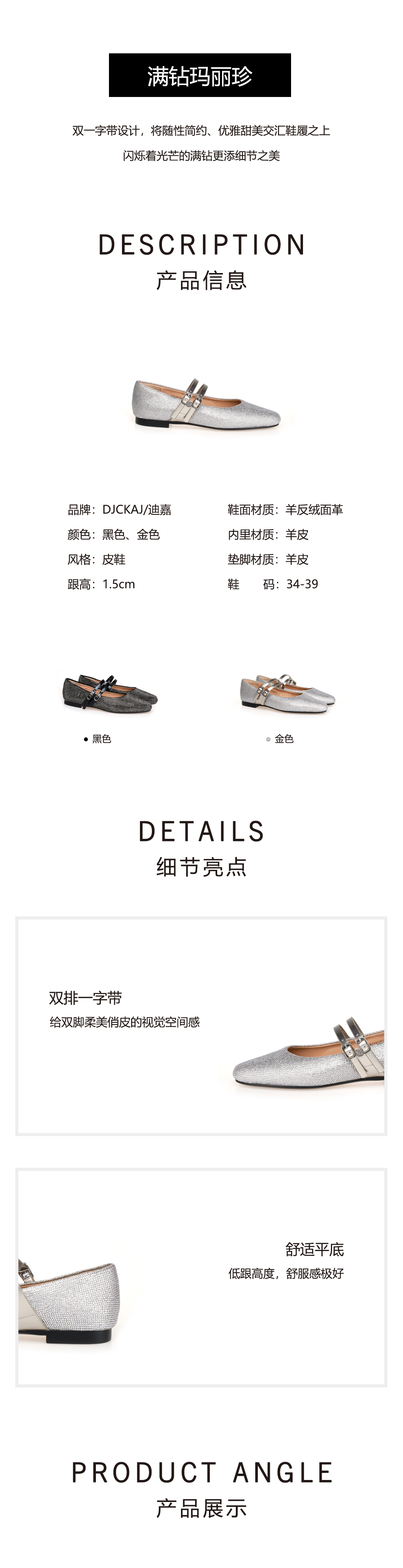 豪麟名鞋奥莱迪嘉女鞋平底鞋织物DJHJA51WP001金色 原价1660元