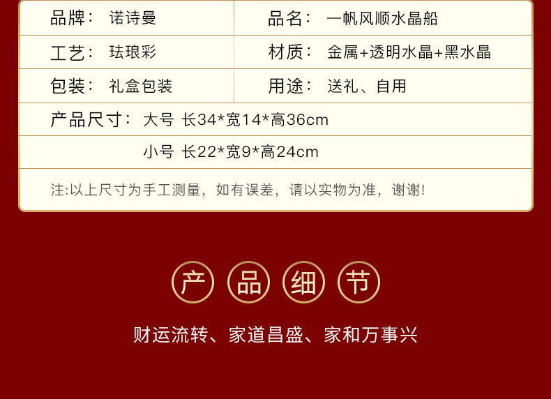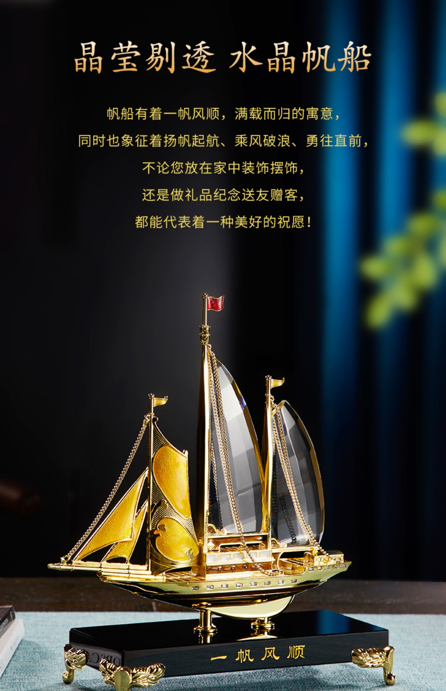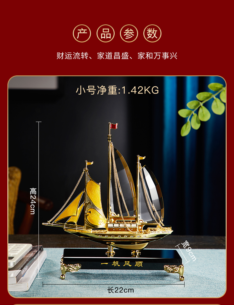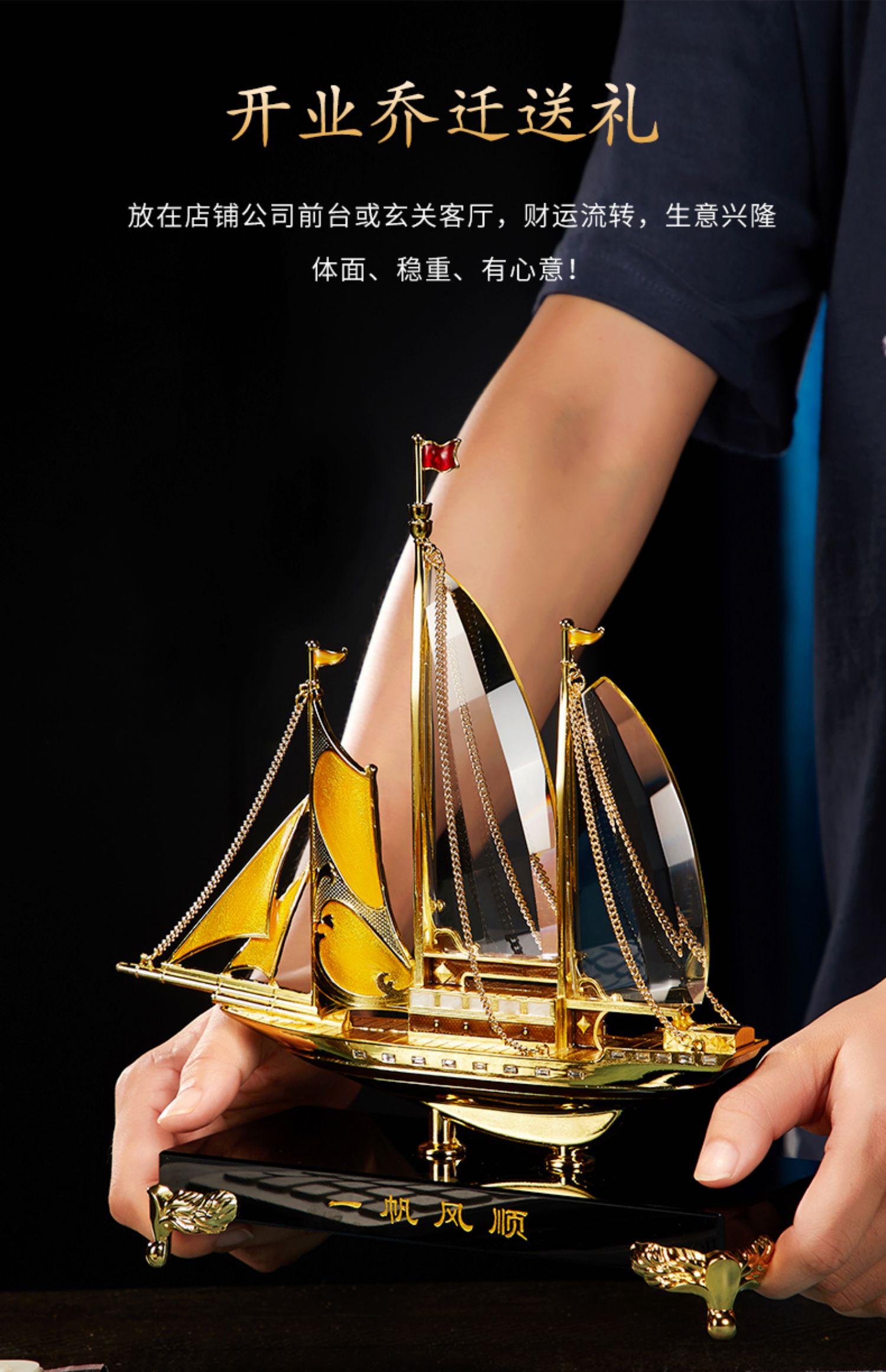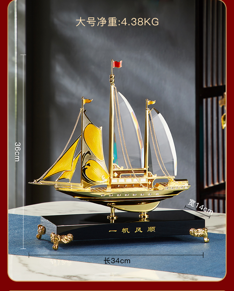 E-N-H0355/0317 诺诗曼 一帆风顺 珐琅+水晶 摆件(礼盒装)
