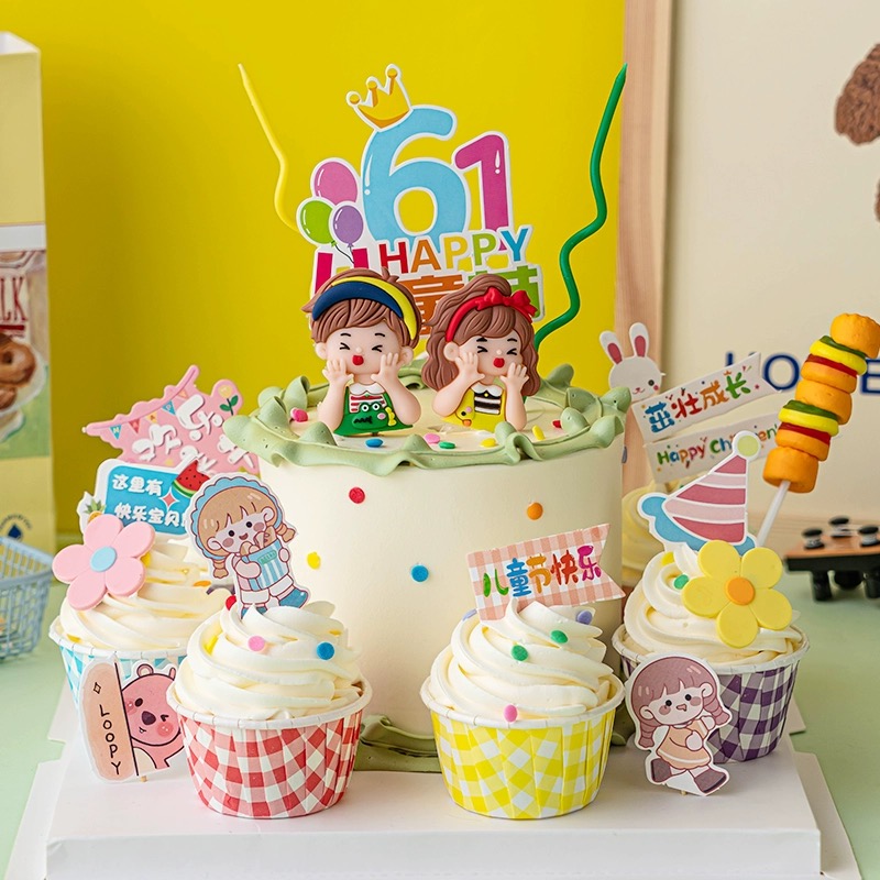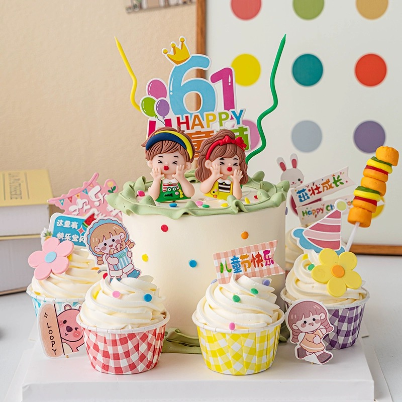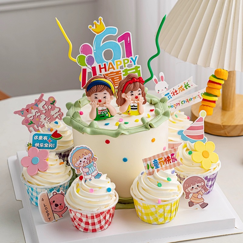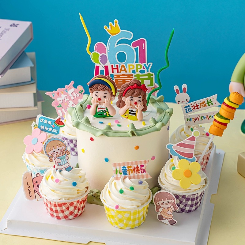 E款-俏皮可爱·六一儿童节蛋糕+纸杯蛋糕组合