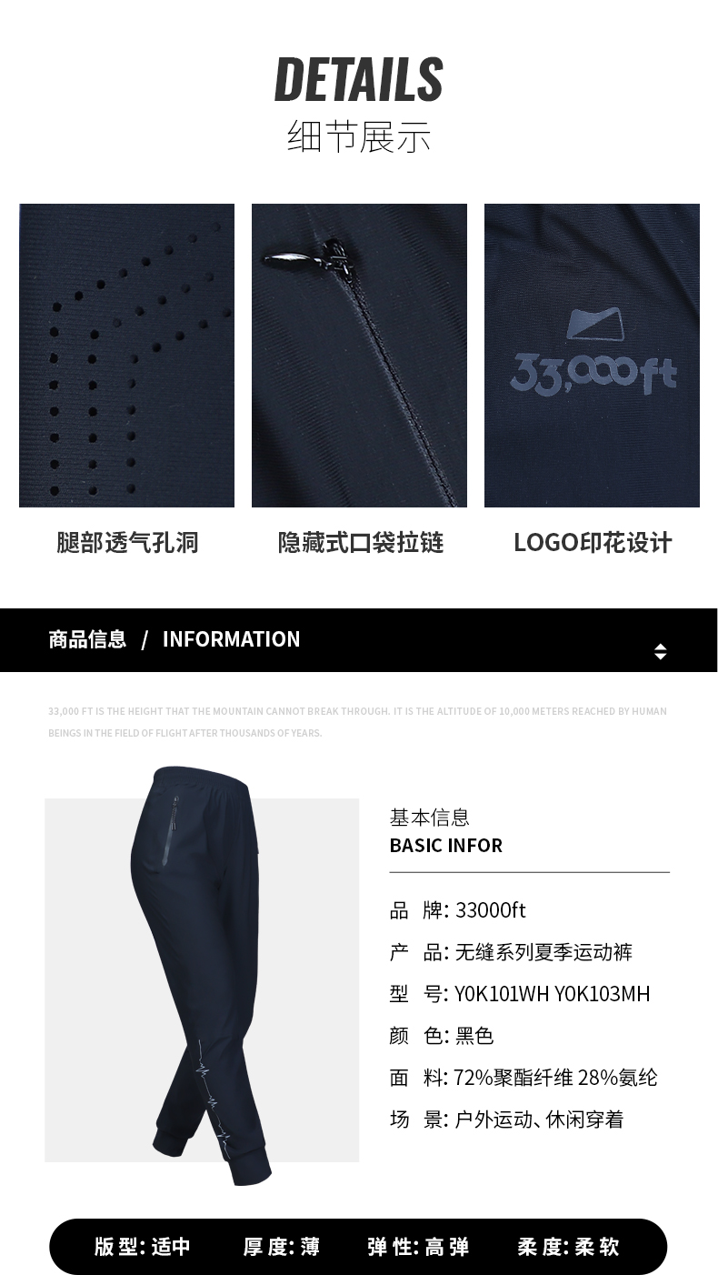 33000ft冰感速干裤男女款夏季户外运动徒步透气轻薄微弹显瘦快干裤
