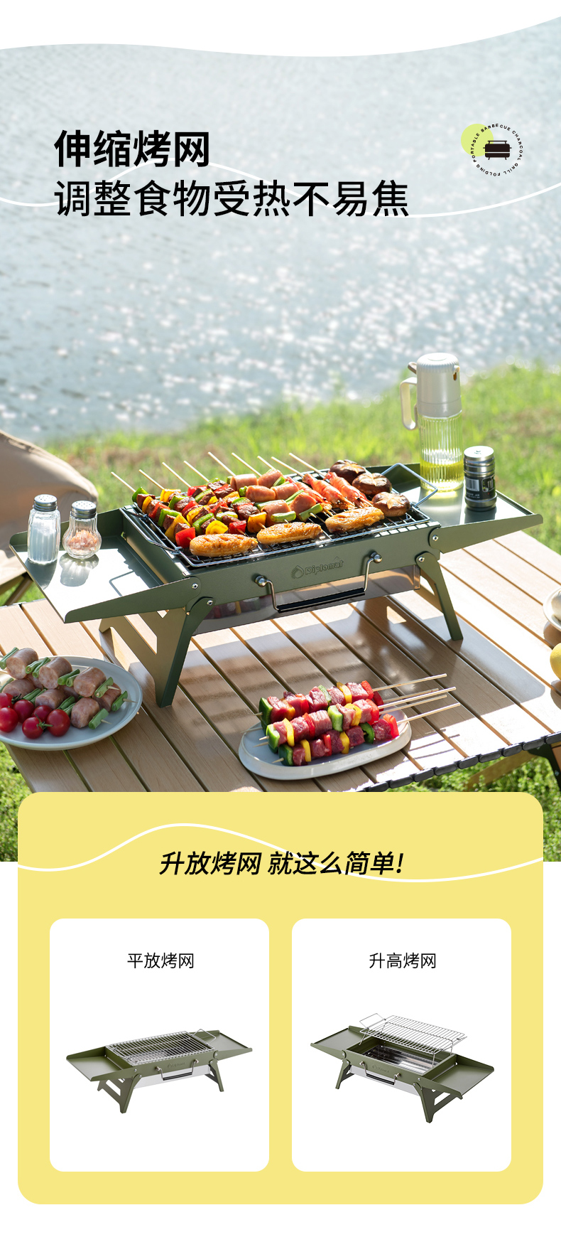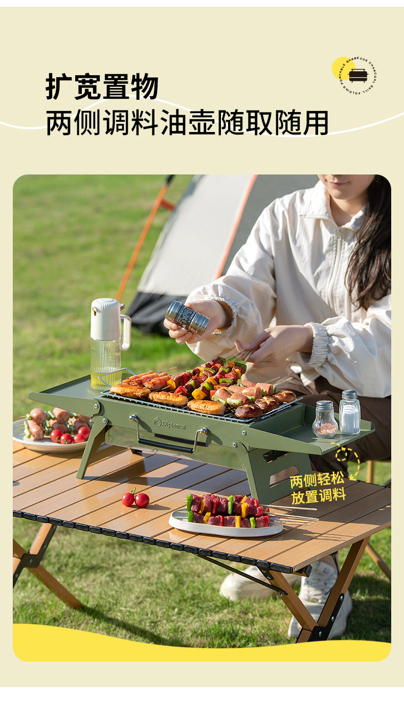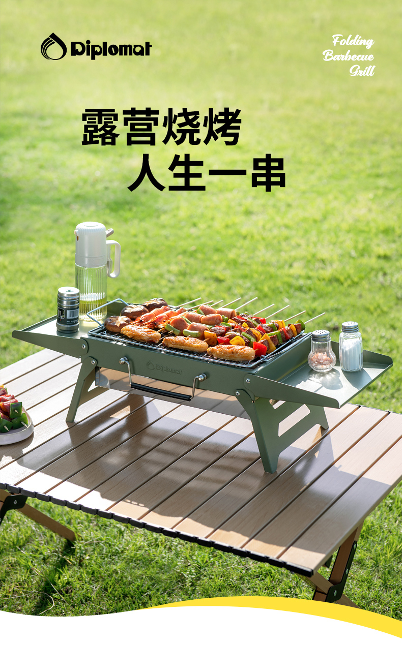 【自营】 外交官Diplomat 折叠碳烤炉 两侧储物伸缩烤网 三步开合