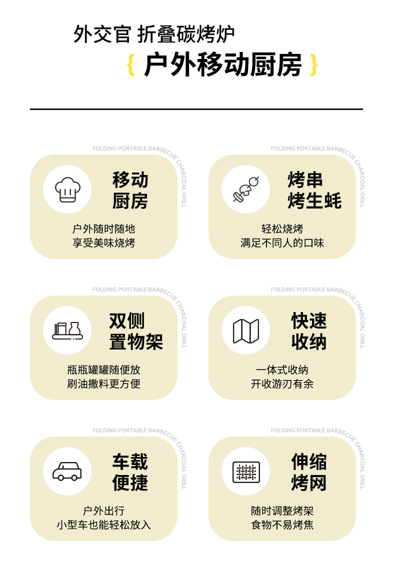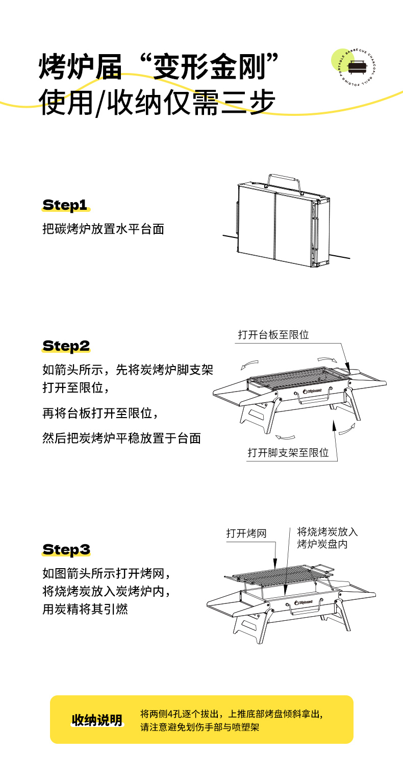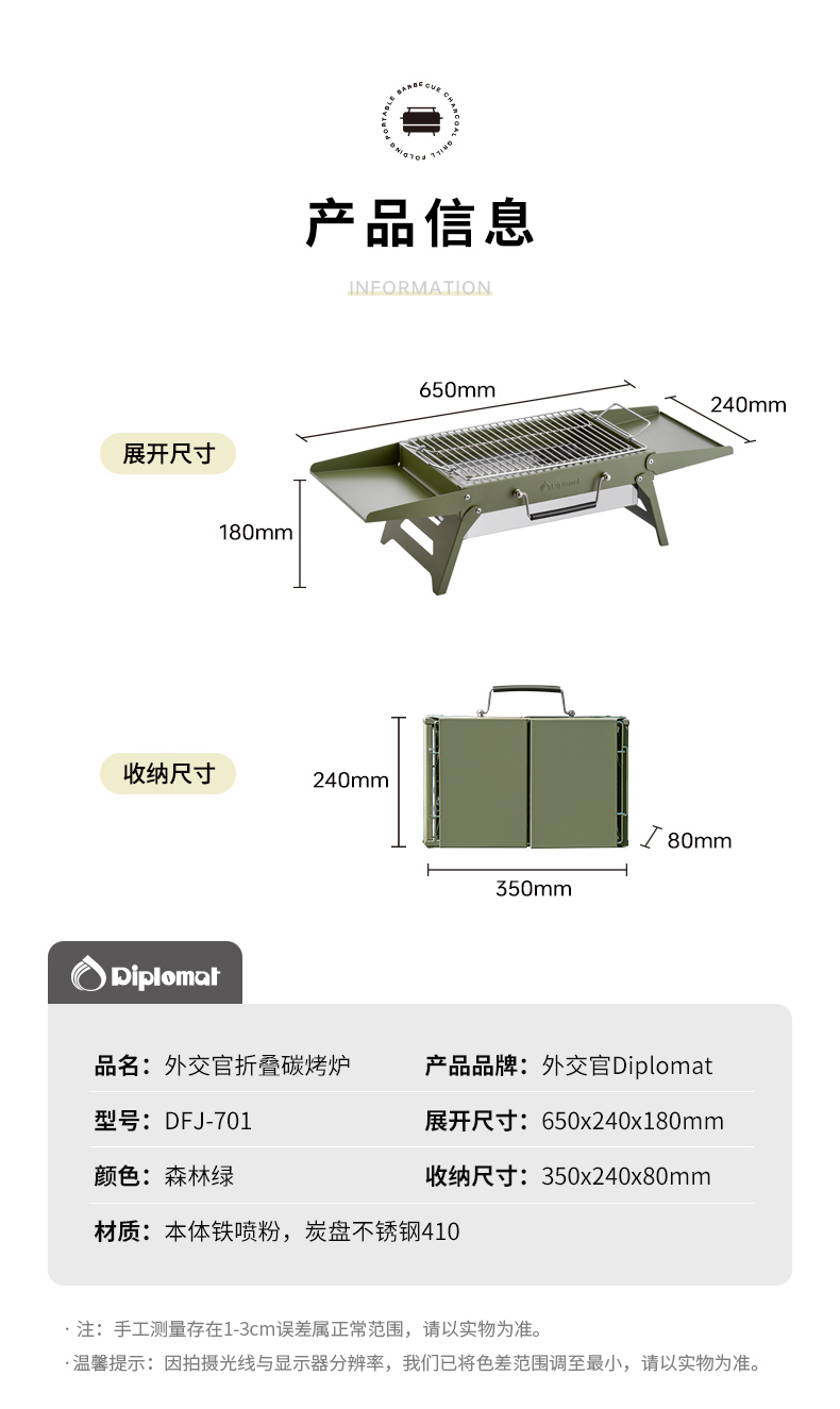 【自营】 外交官Diplomat 折叠碳烤炉 两侧储物伸缩烤网 三步开合