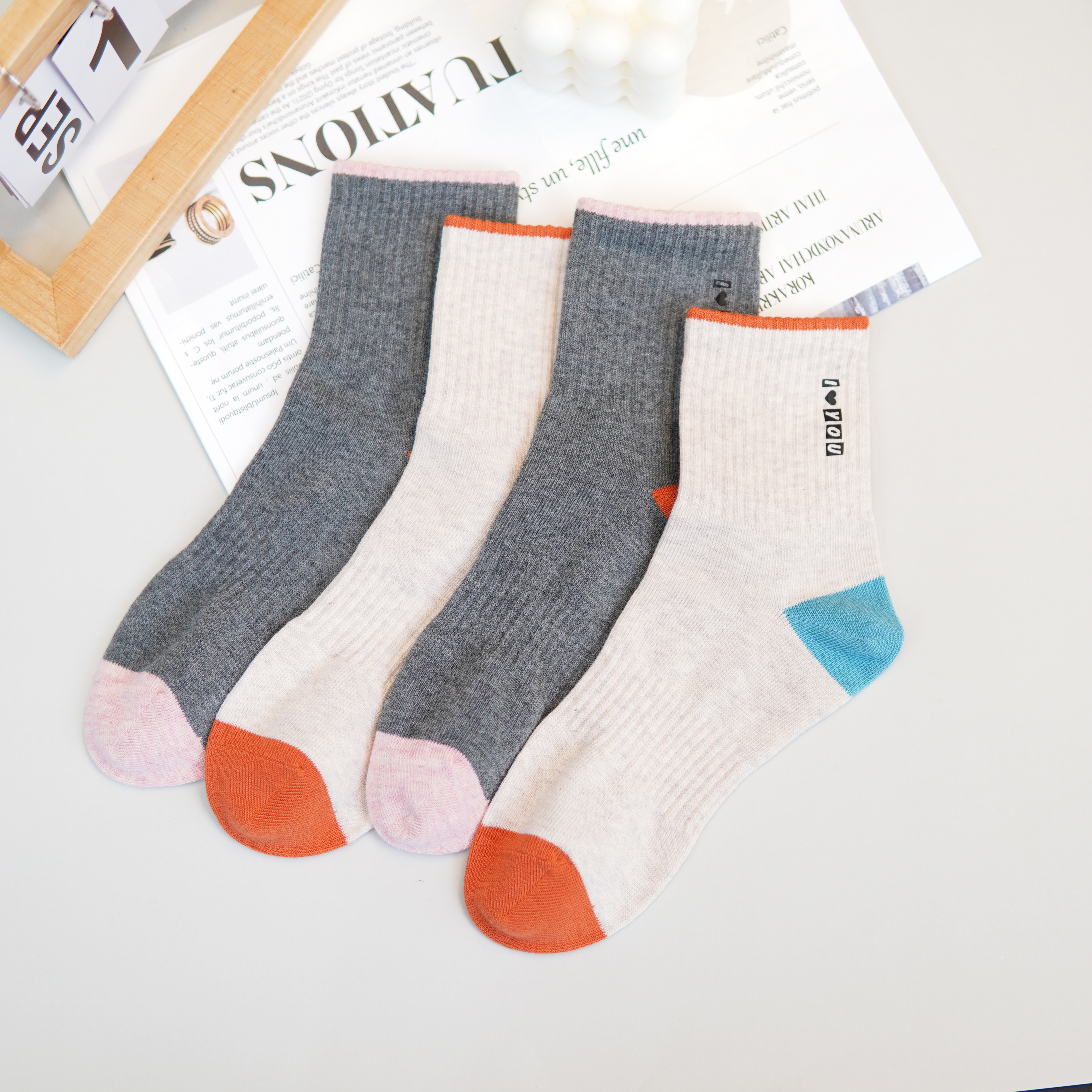 【2双装】【6双6折】女士时尚运动休闲袜中筒棉袜女袜四季袜子【2422111】