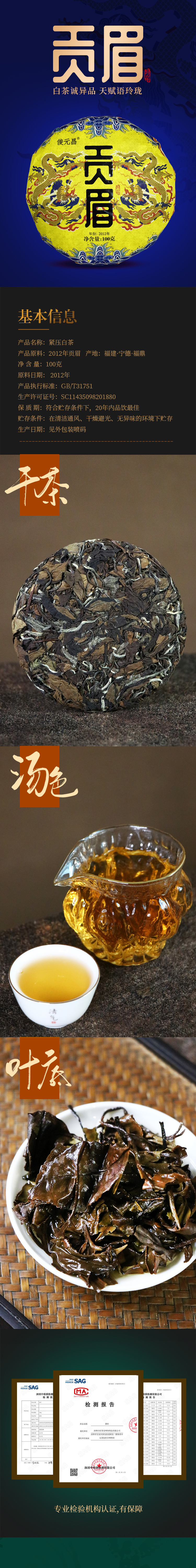 【冬饮白茶】俊元昌 2012年 福鼎紧压白茶 贡眉 100g/饼
