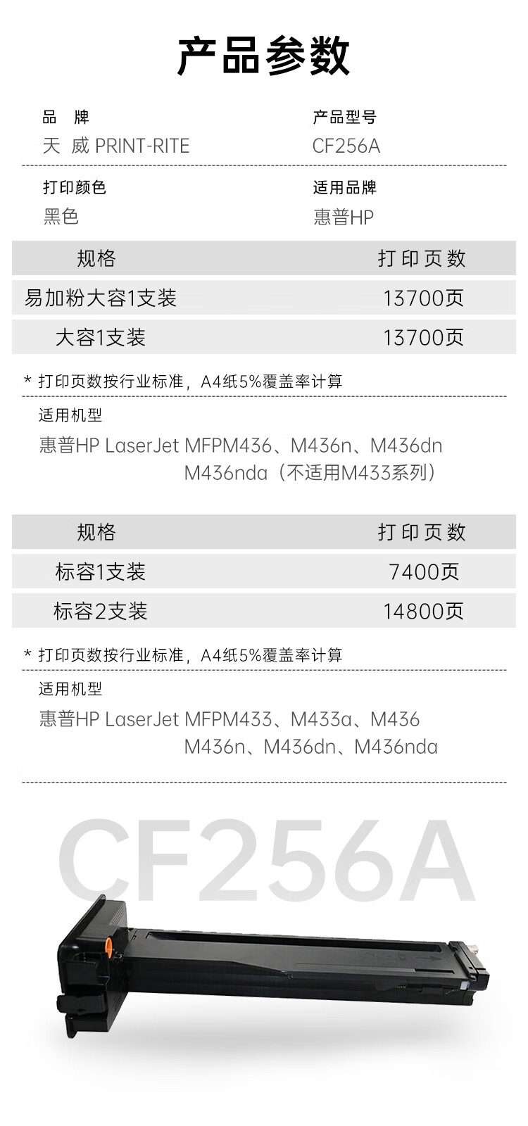 天威CF256A硒鼓 m436n硒鼓 适用惠普HP M436nda粉盒 hp56A粉盒 m436dn墨粉 打印机墨盒 CF256X大容量碳粉盒