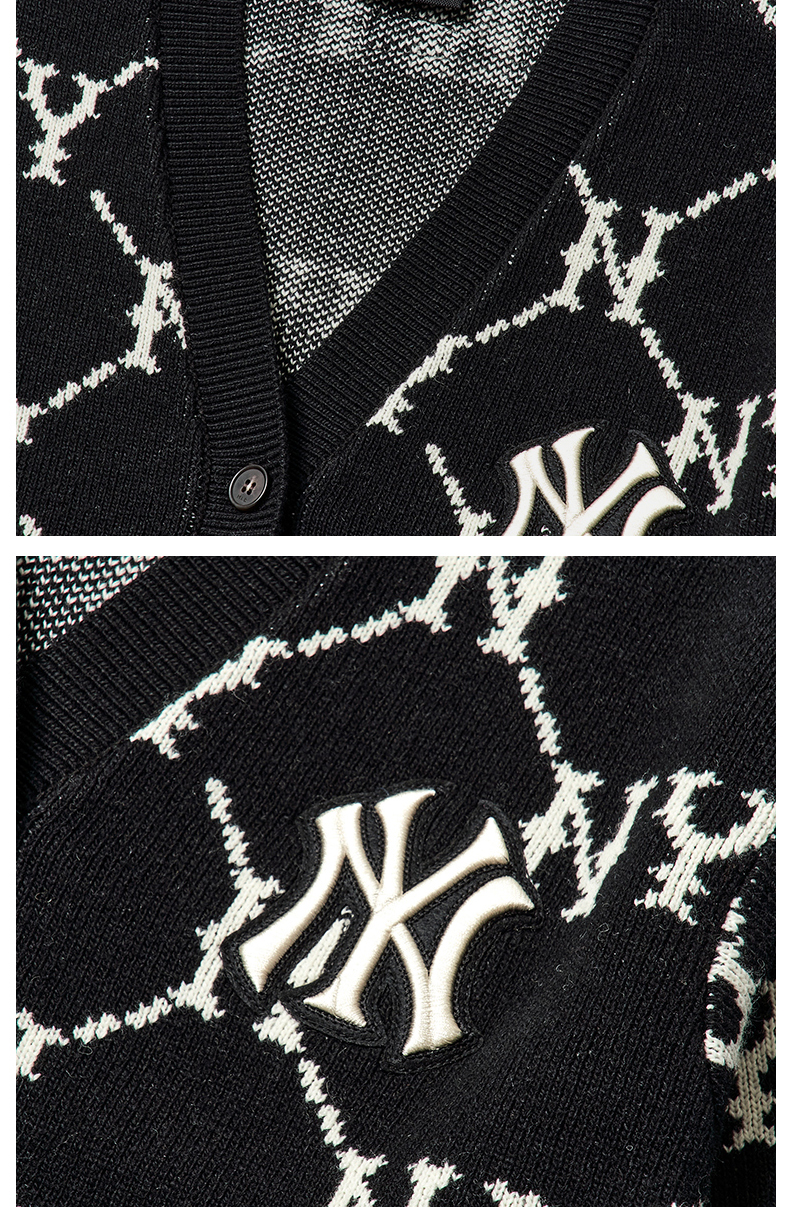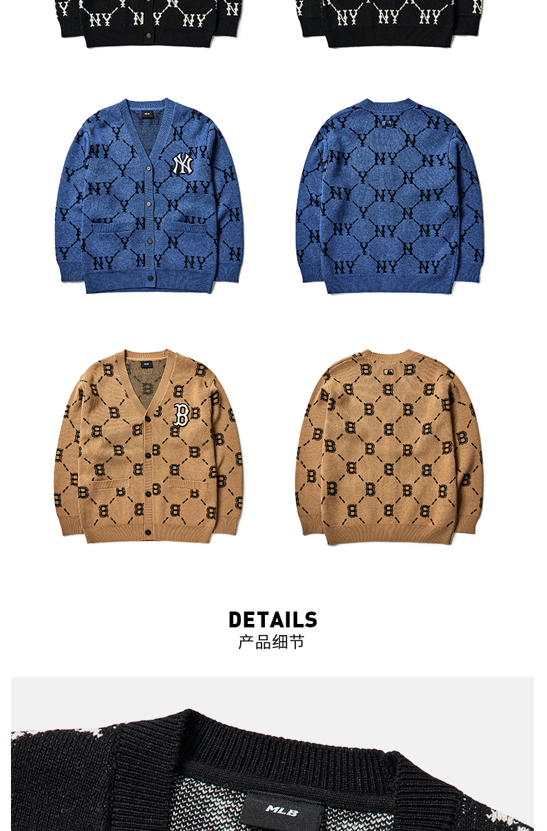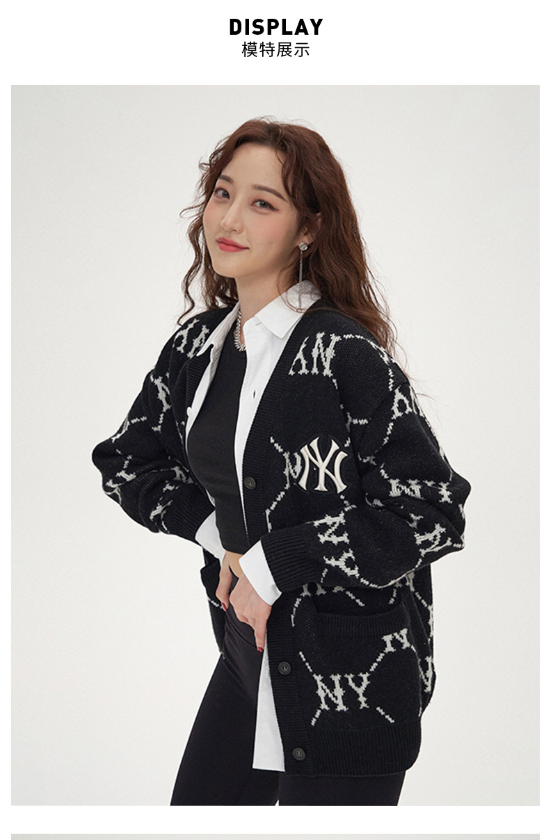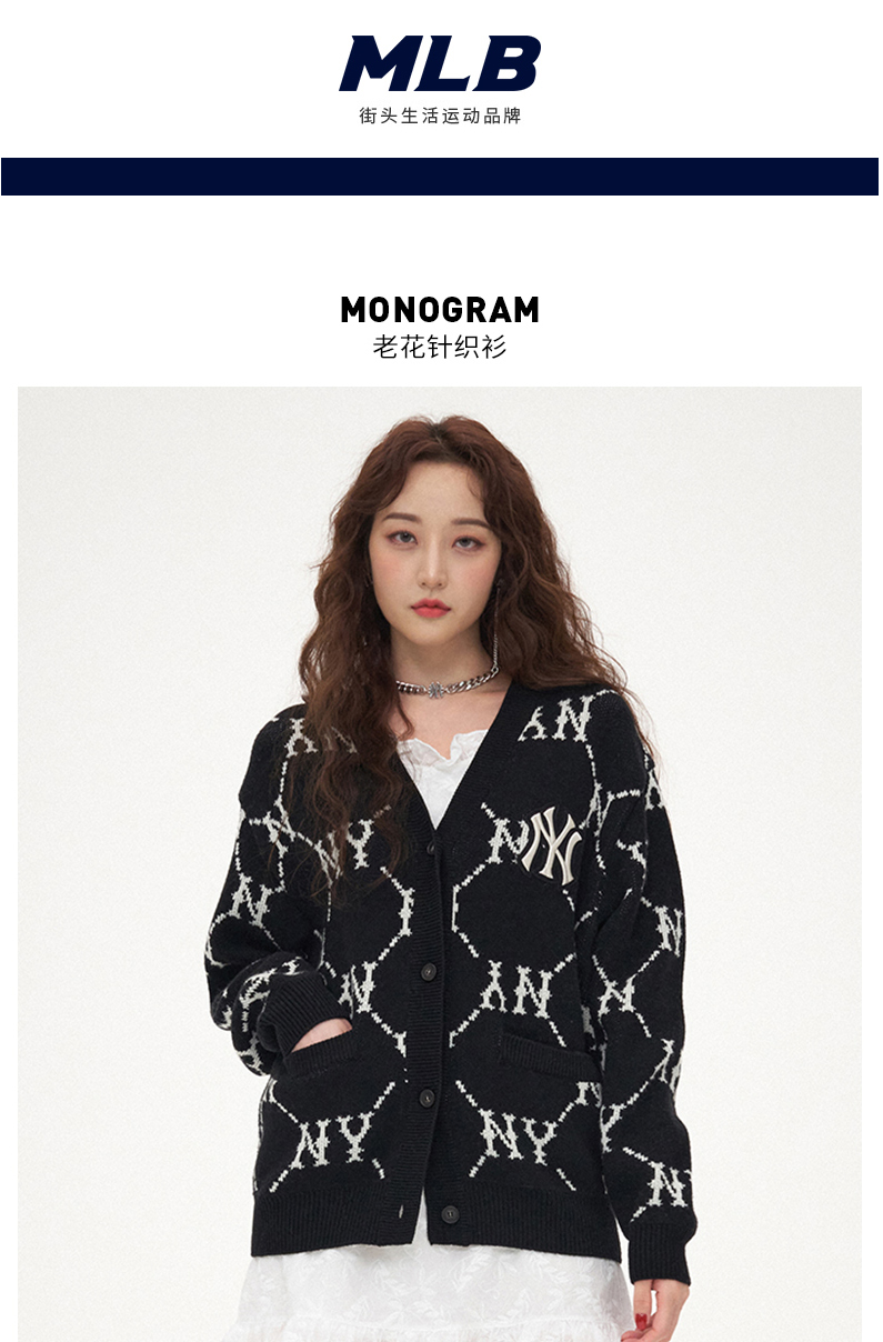 MLB男女针织衫复古老花棉羊毛开衫外套保暖春季新款3AKTM0214