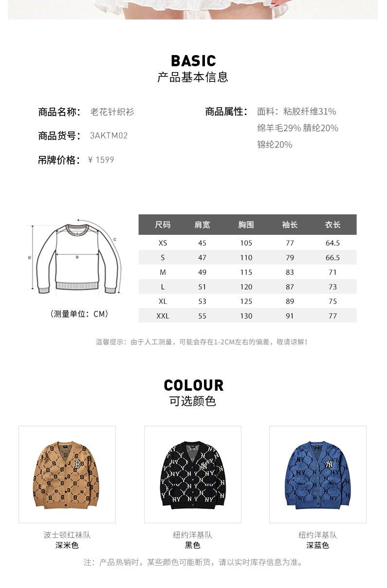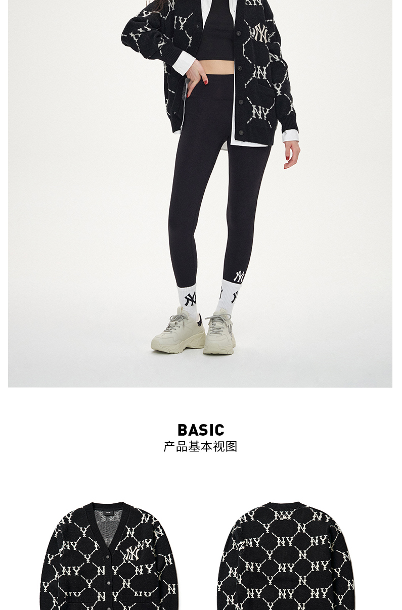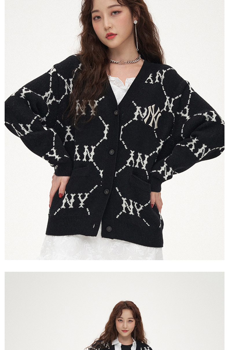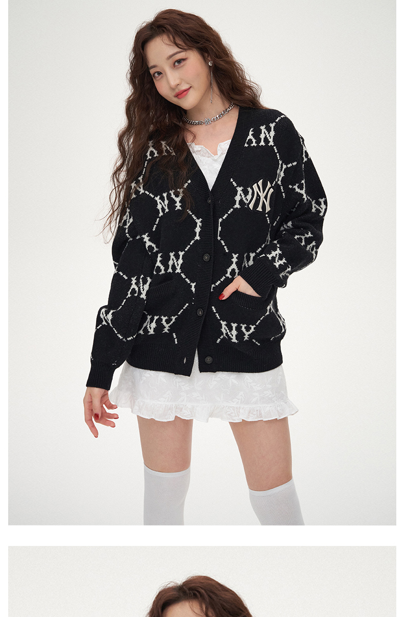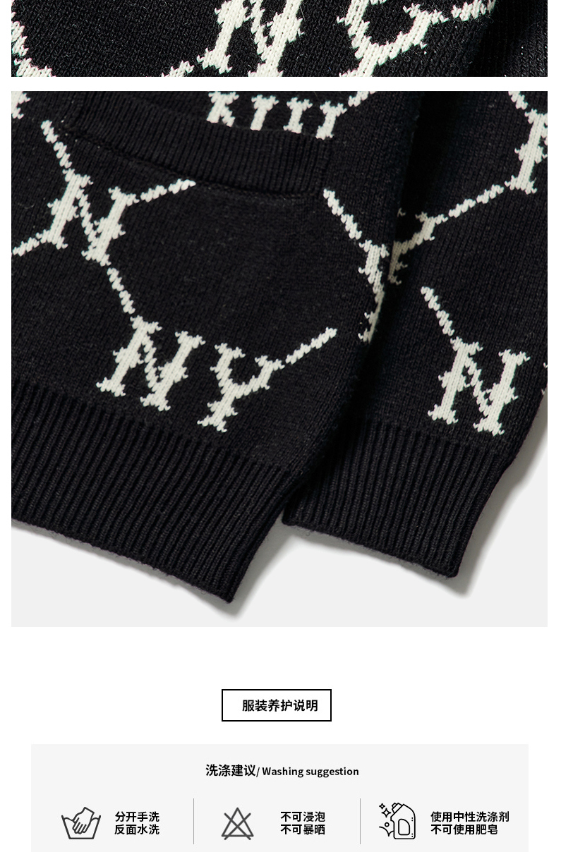 MLB男女针织衫复古老花棉羊毛开衫外套保暖春季新款3AKTM0214