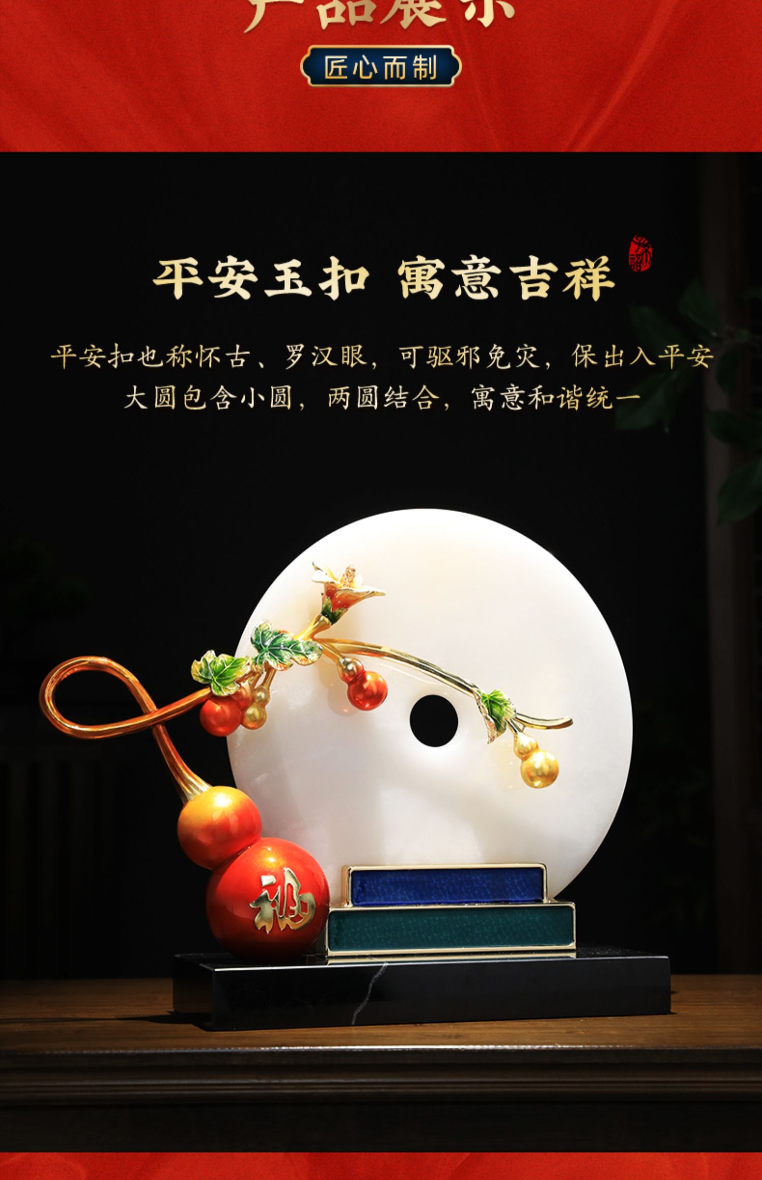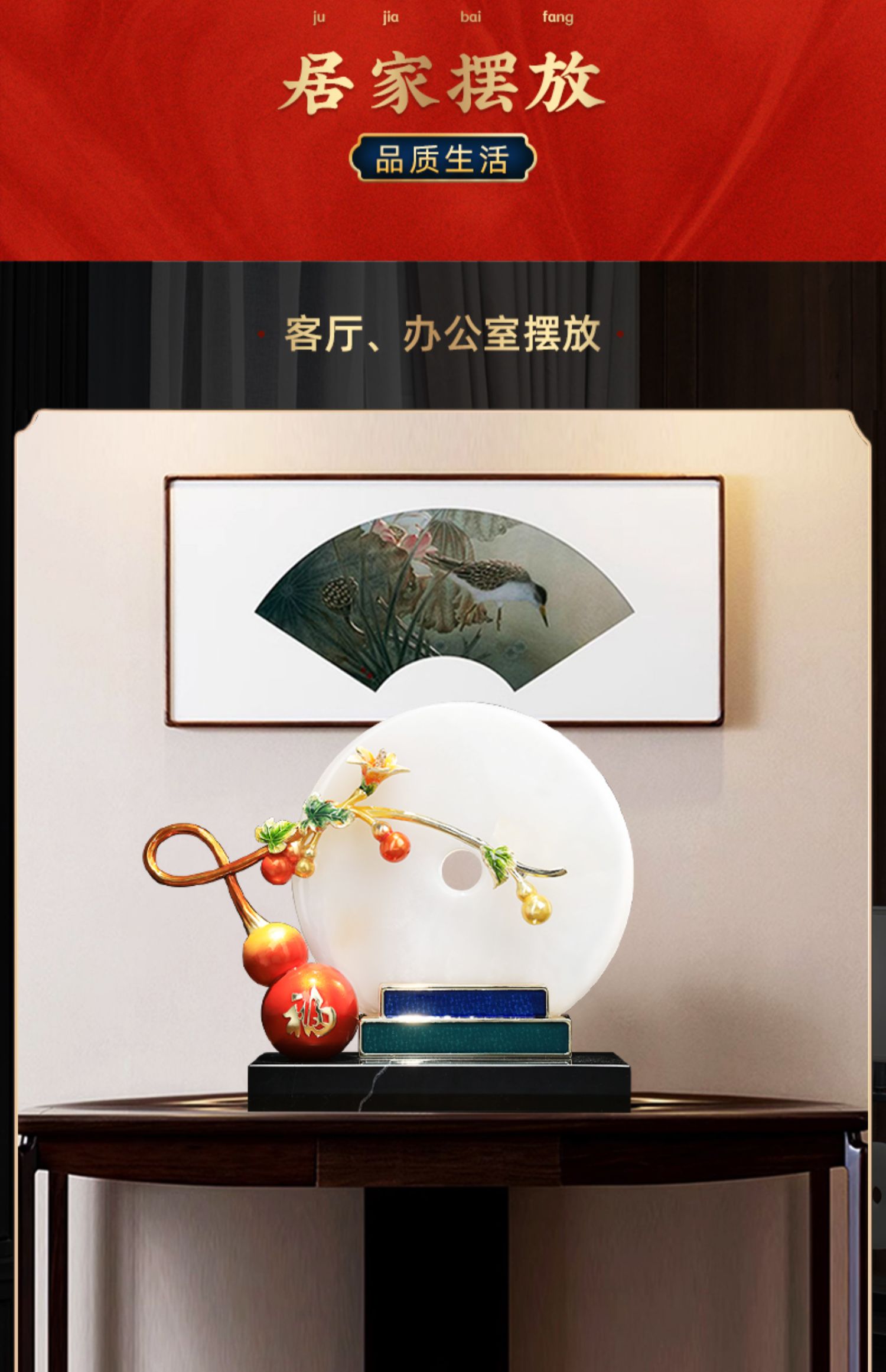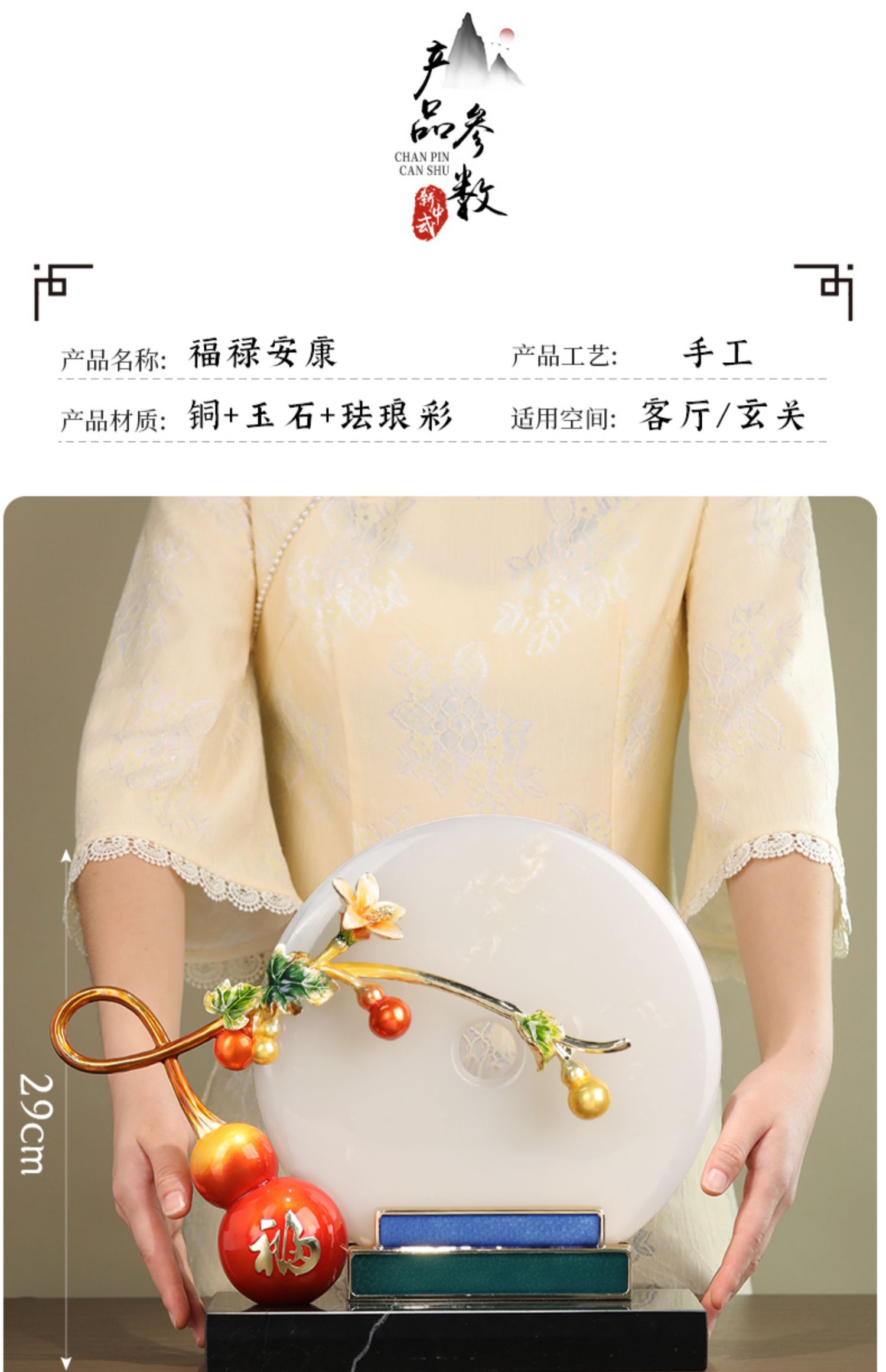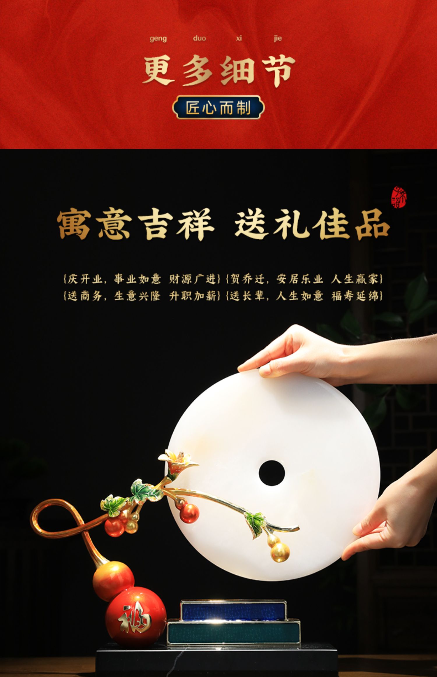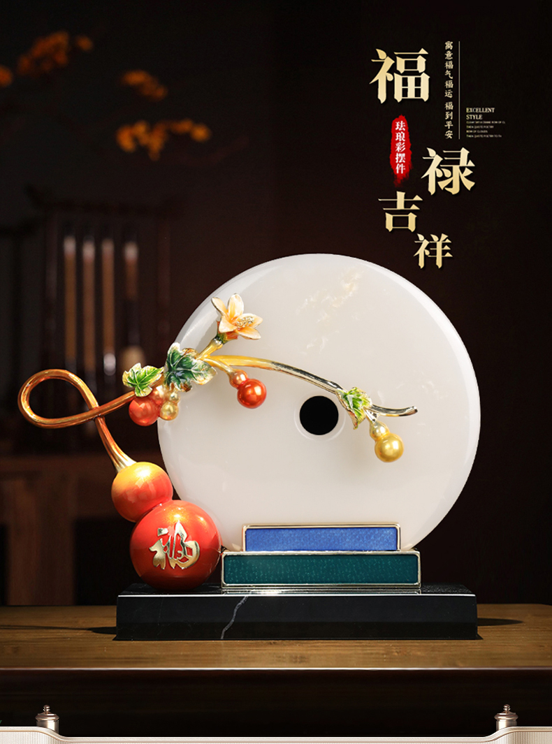 E-ZL-M965 五福临门玉盘珐琅摆件 礼盒装