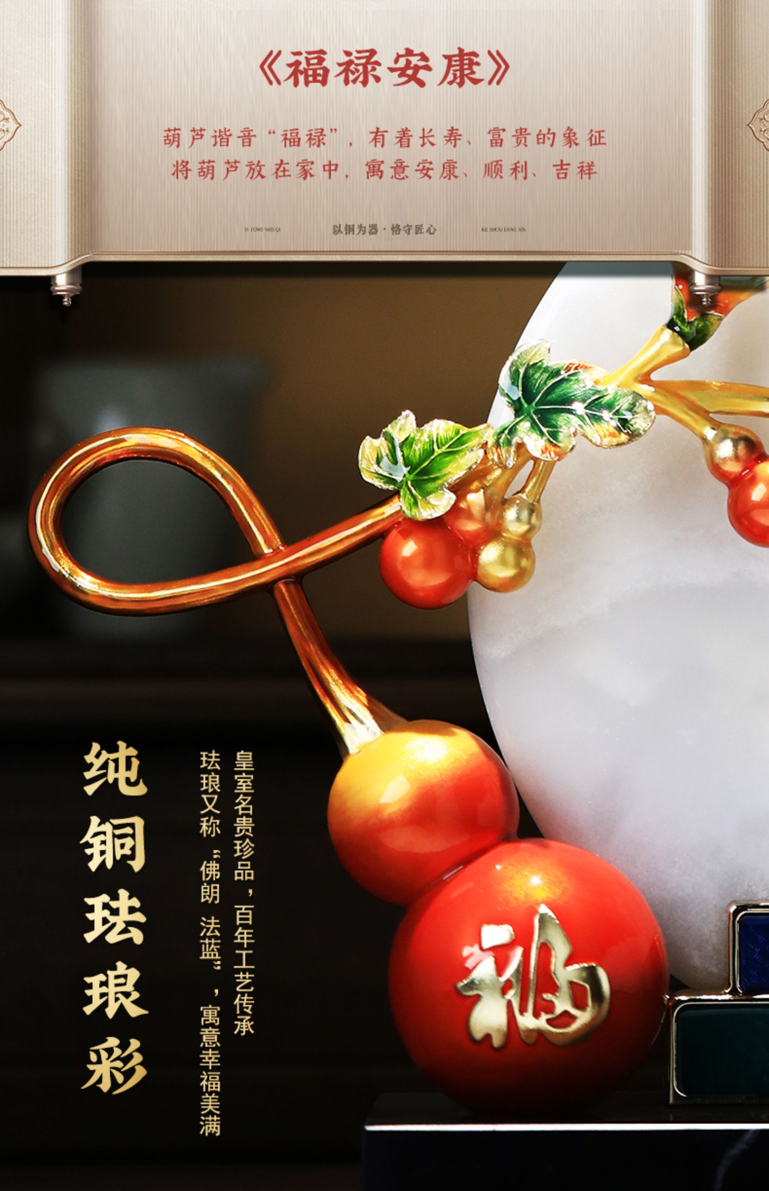 E-YM-FK283 彩铜工艺 事事如意葫芦摆件 240*100*300