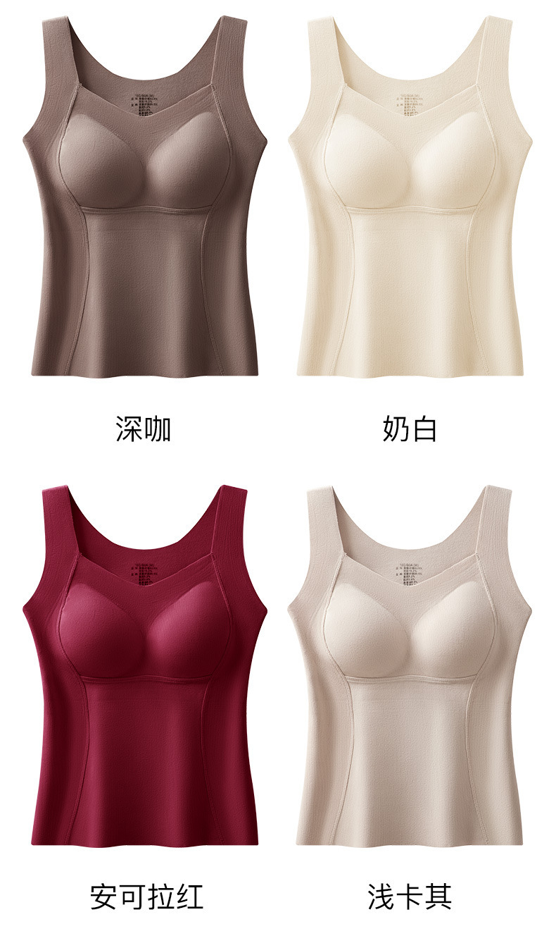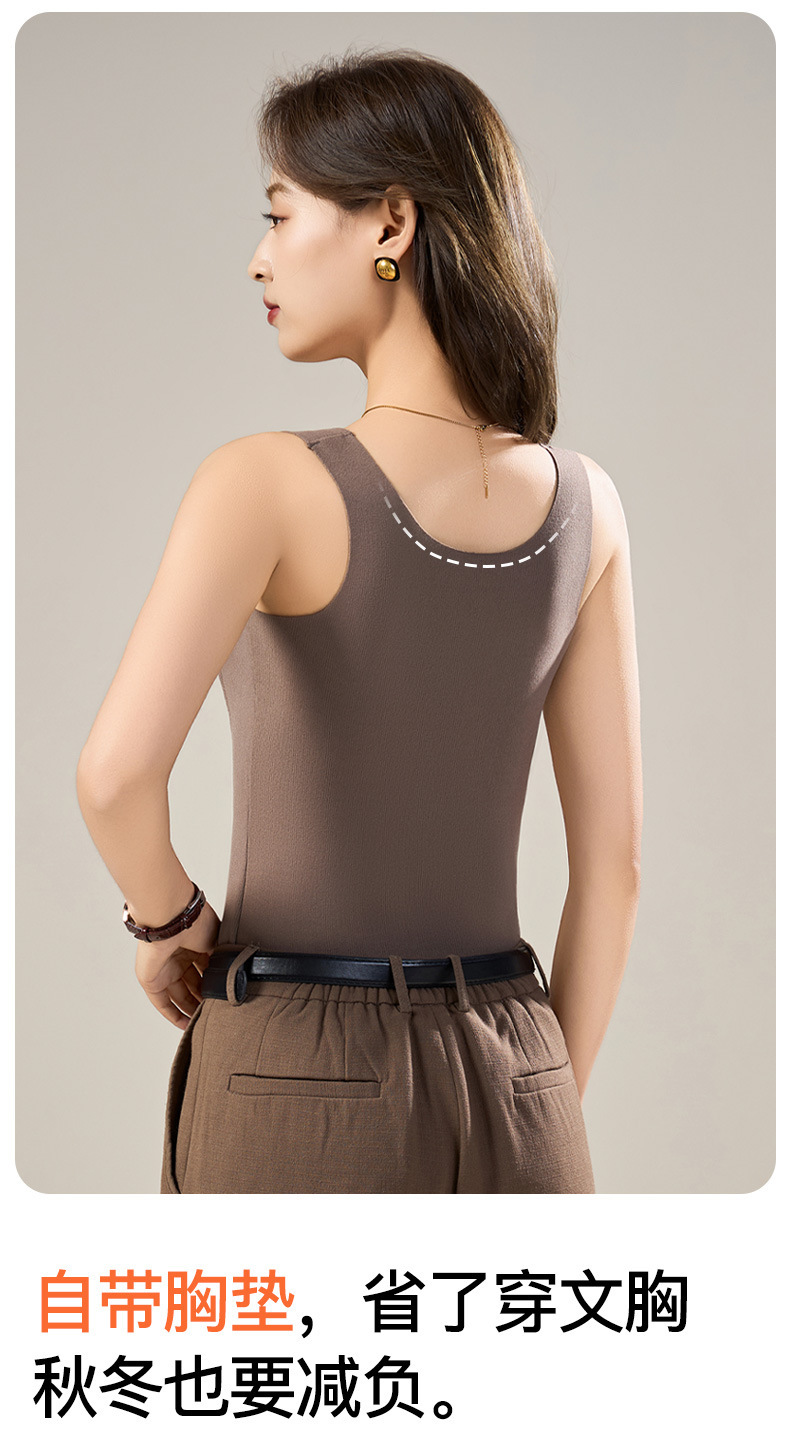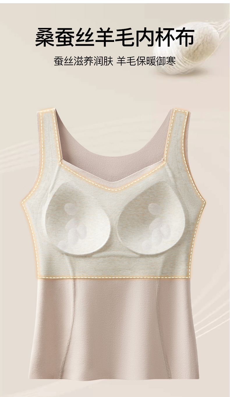 【超值2件装】羊绒蚕丝保暖背心女带胸垫免穿文胸内搭外穿秋冬加绒打底上衣
