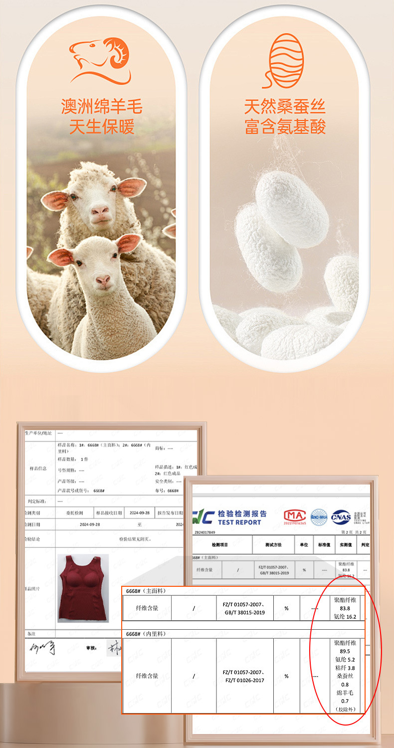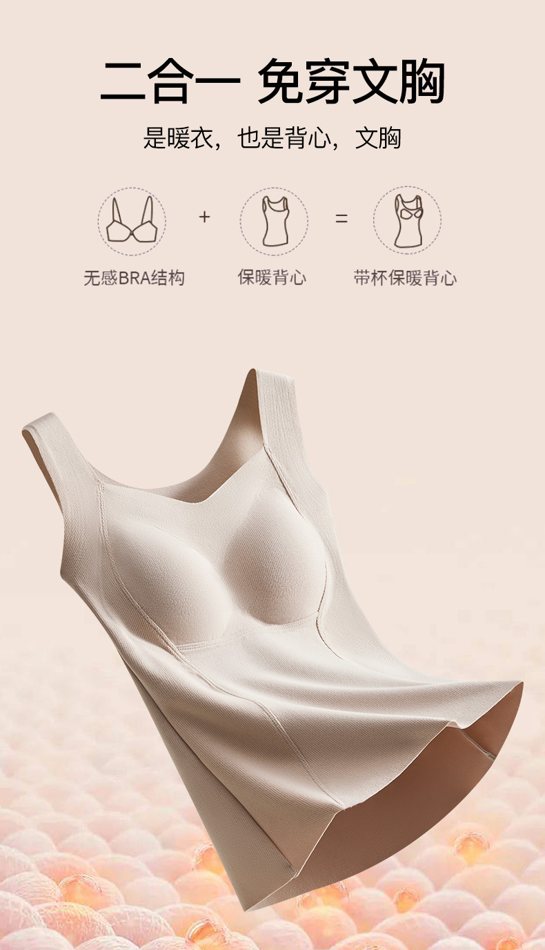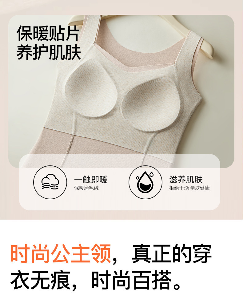 【超值2件装】羊绒蚕丝保暖背心女带胸垫免穿文胸内搭外穿秋冬加绒打底上衣