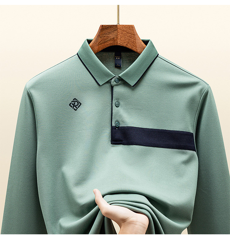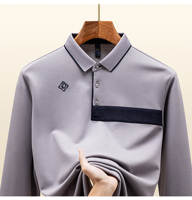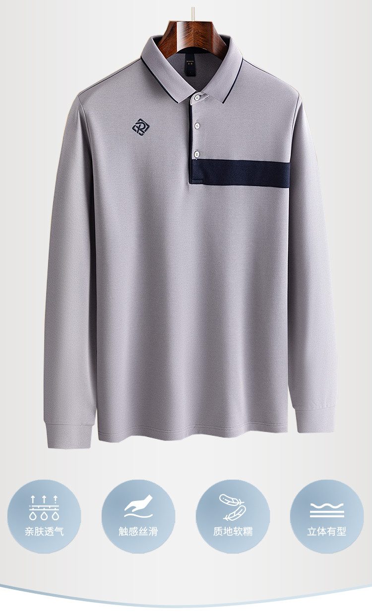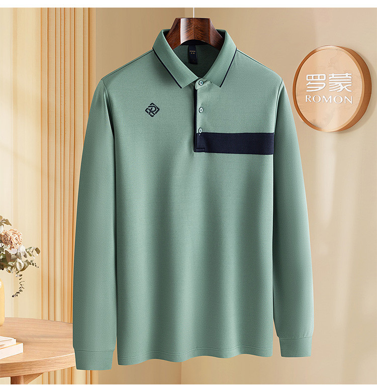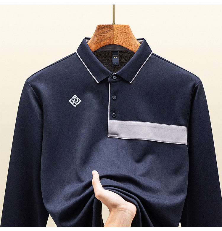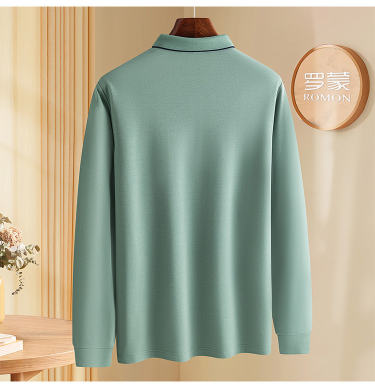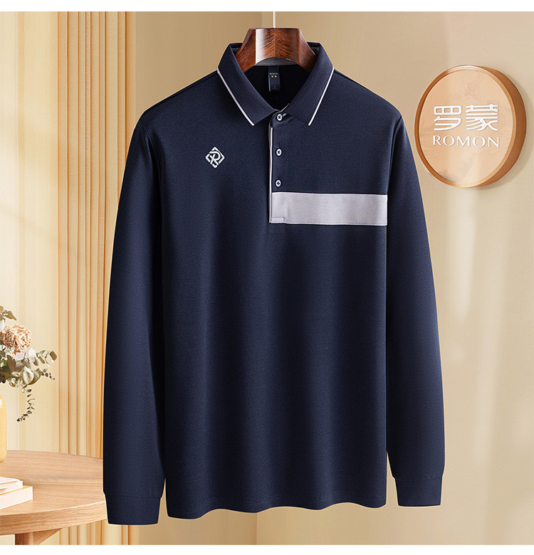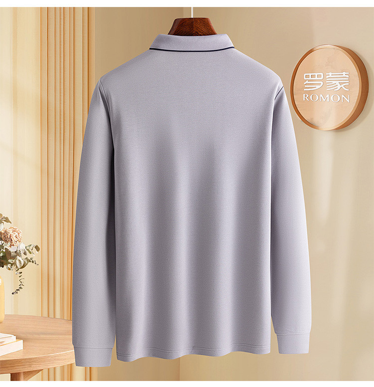 罗蒙男士Polo衫含羊毛蚕丝保暖舒适商务polo衫男长袖t恤男t恤