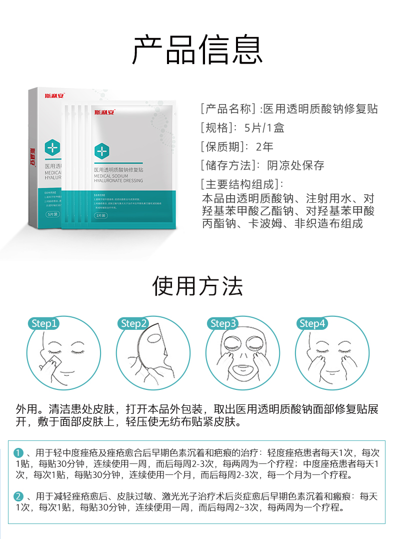 斯利安械字号面膜医用透明制酸钠修复贴1片