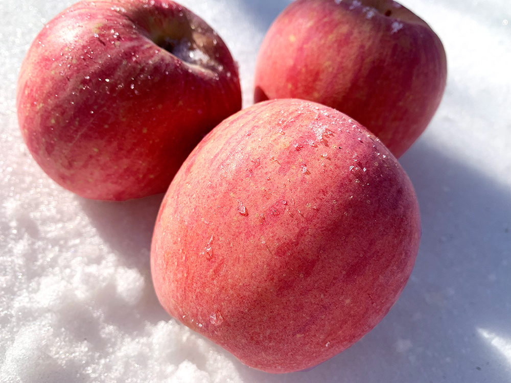 2.天气严寒的地区,苹果刚到货可能受冻、有冰碴,请不要拒收;将苹果整箱放在屋内静置,不直接触摸,可以自然解冻,口感不会有变化,同样好吃,受冻的苹果不在售后范围内,介意勿拍。