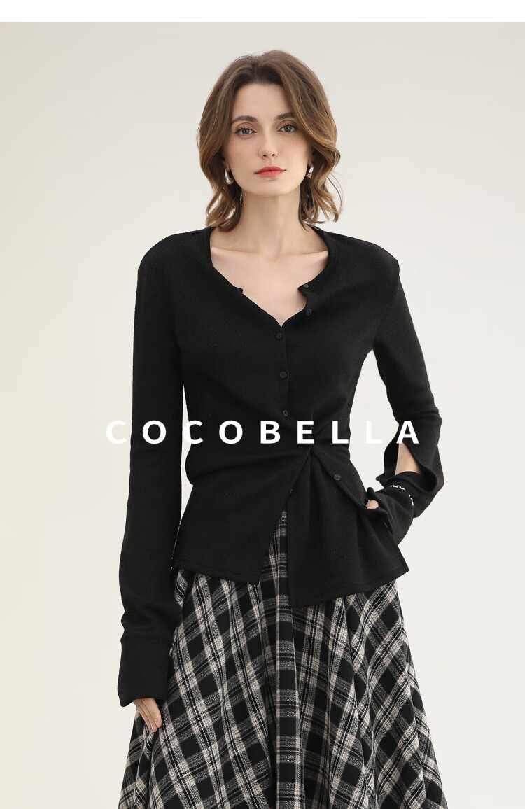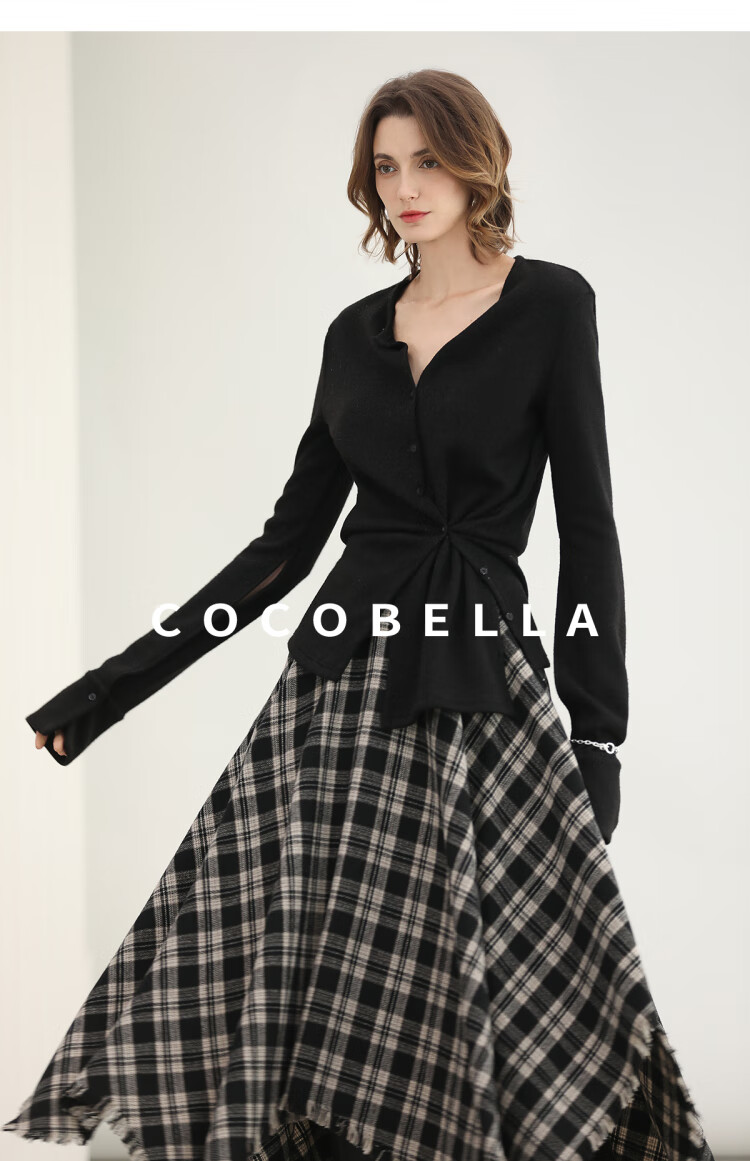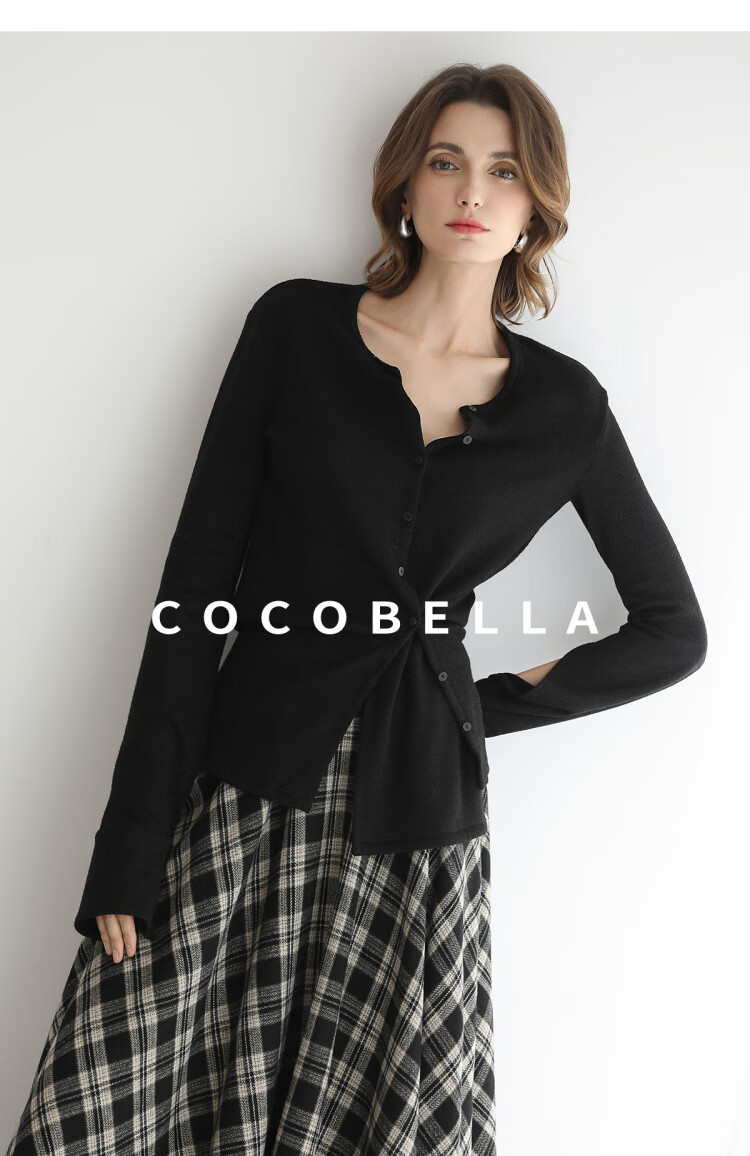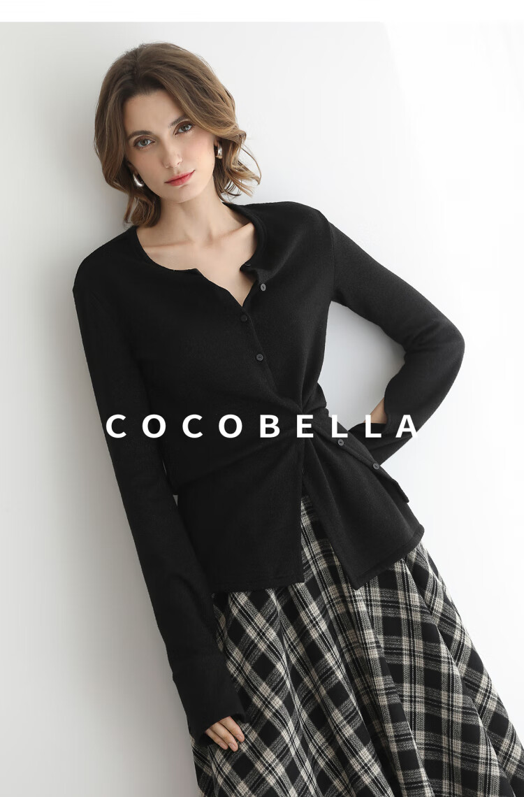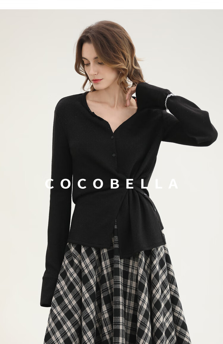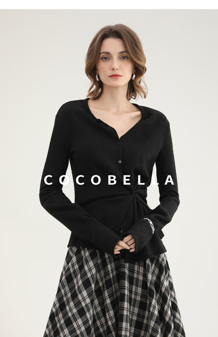 COCOBELLA多穿法不规则捏褶毛针织衫通勤黑色内搭上衣MZ3302