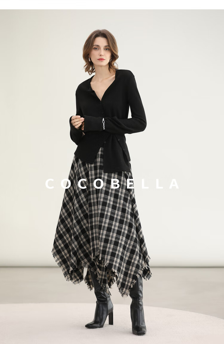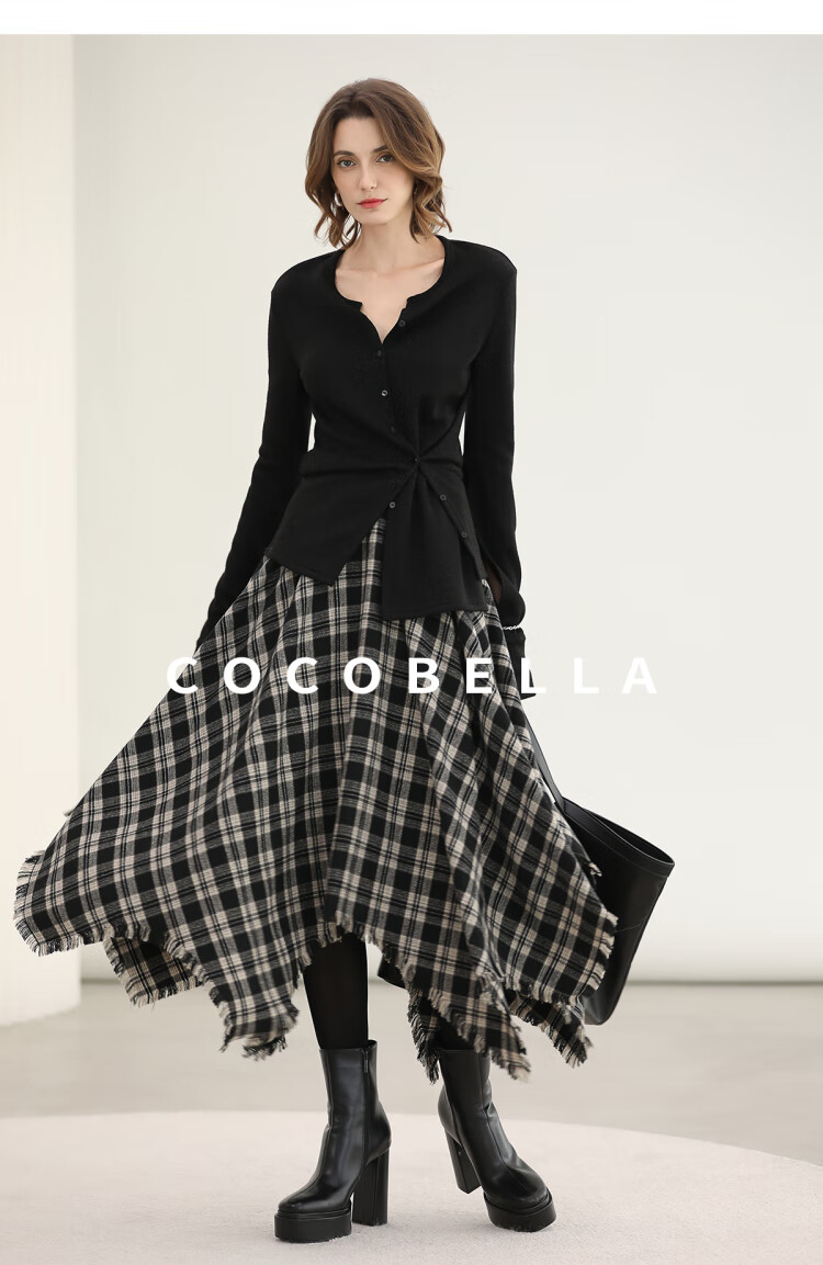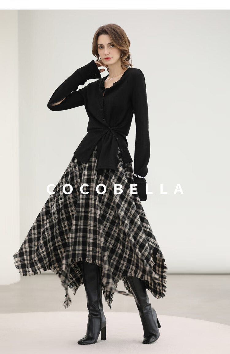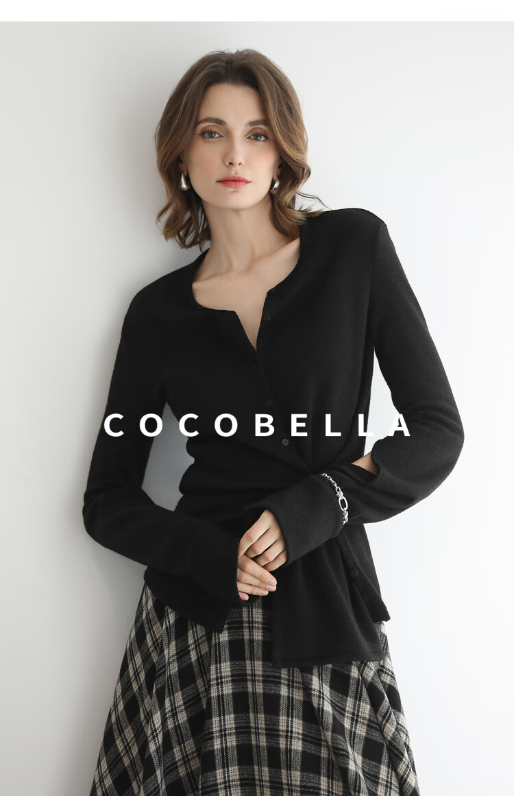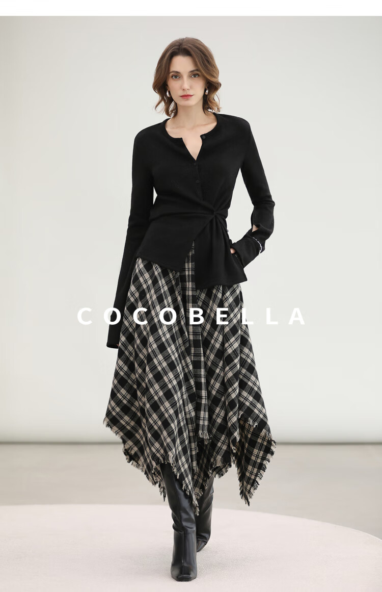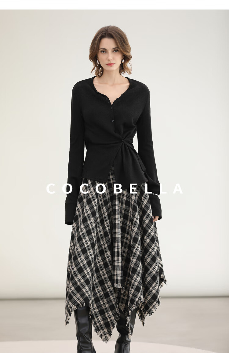 COCOBELLA多穿法不规则捏褶毛针织衫通勤黑色内搭上衣MZ3302