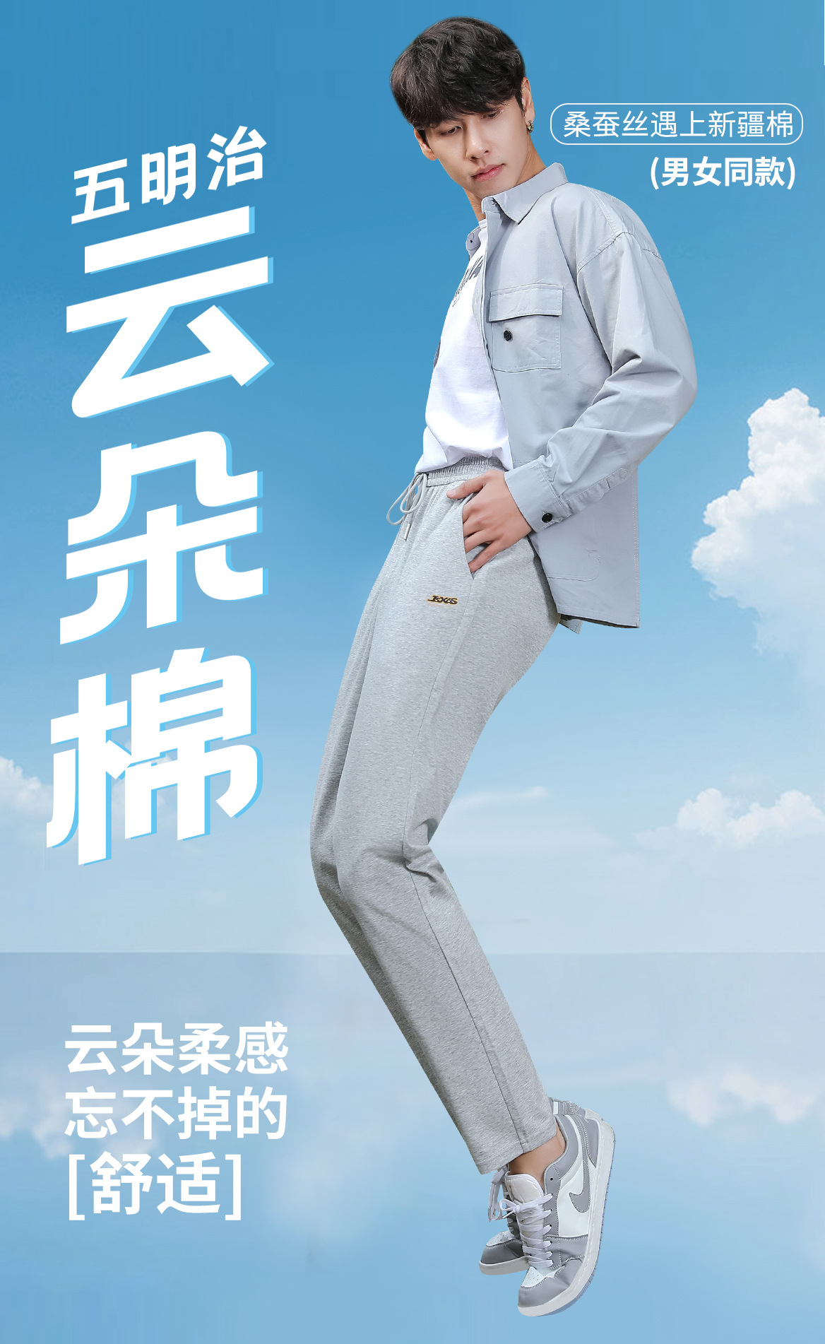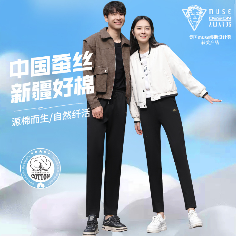 「五好云柔棉!男女同款」运动裤男女同款春秋2024新款高腰宽松直筒云朵裤垂感休闲小脚卫裤下装