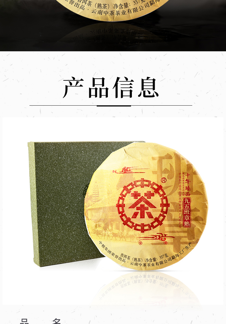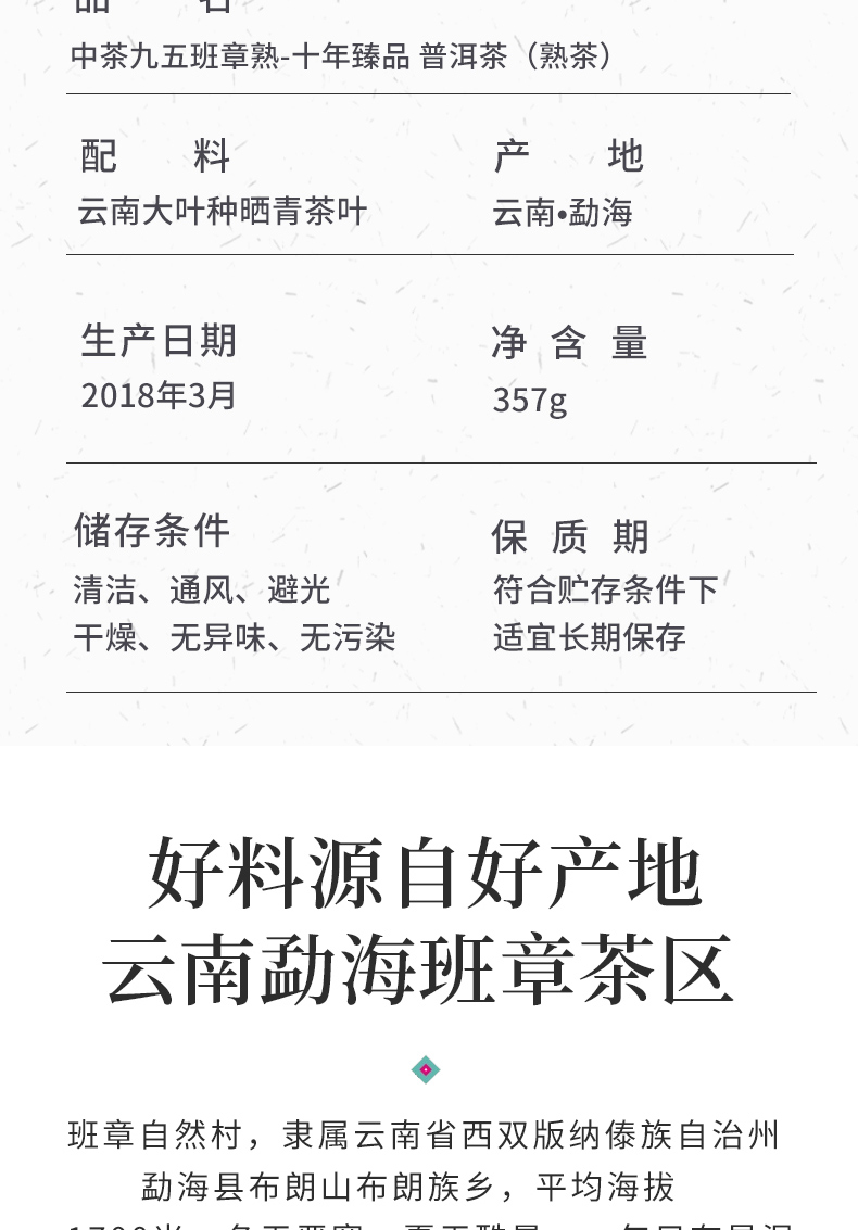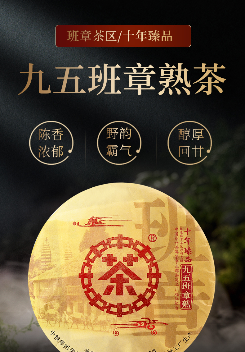 中茶 2018年九五班章十年臻品普洱茶熟茶 勐海工厂起航纪念 357g/饼 单饼