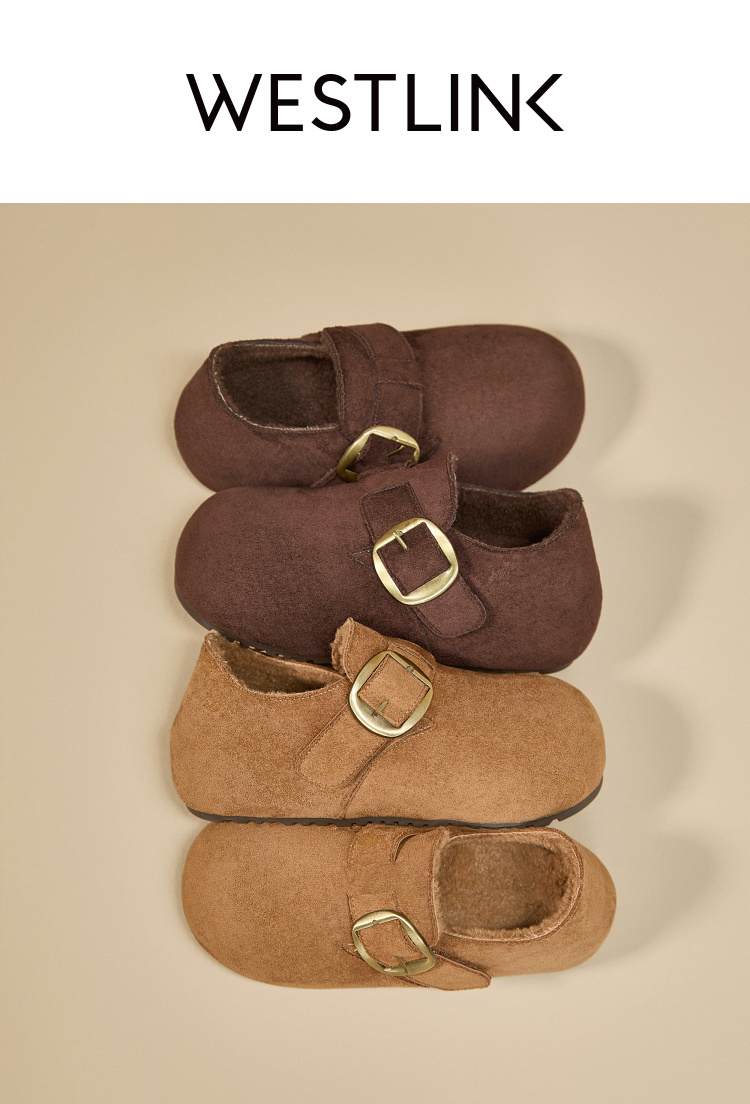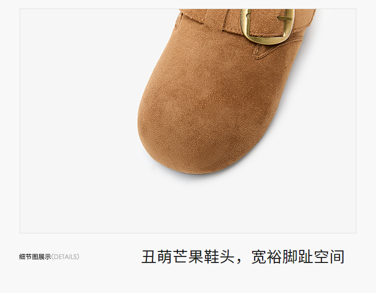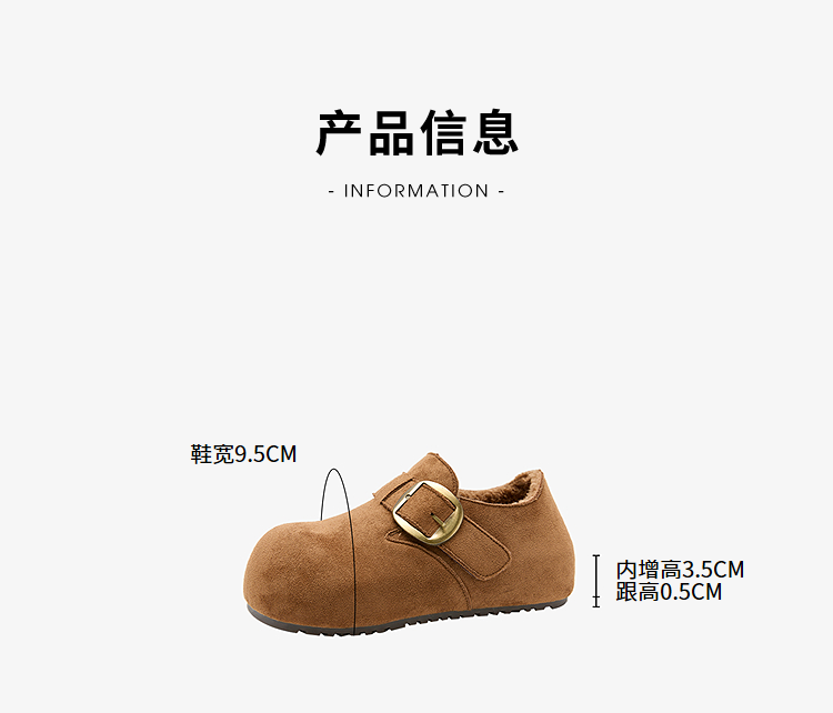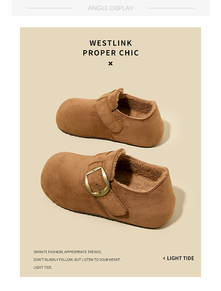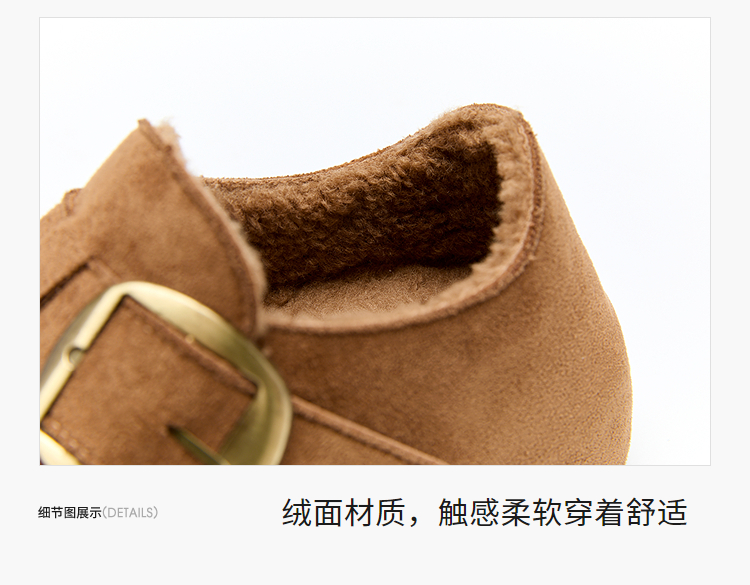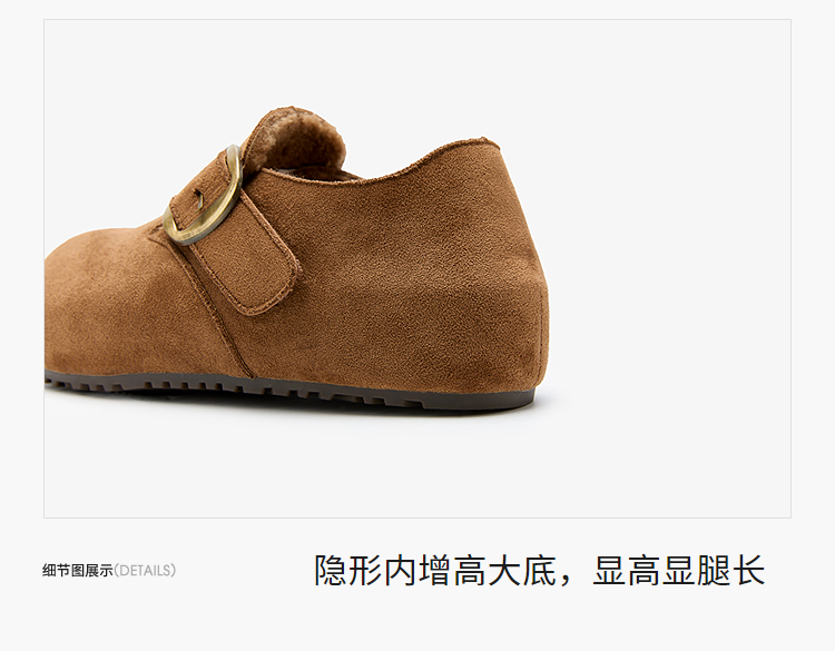 西遇加绒勃肯鞋女新款冬季保暖内增高一脚蹬棉鞋外穿毛毛鞋V2257287
