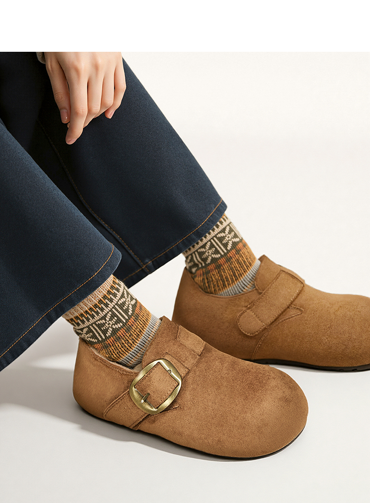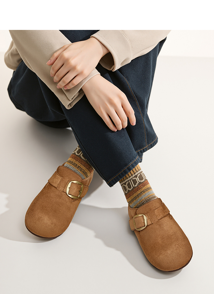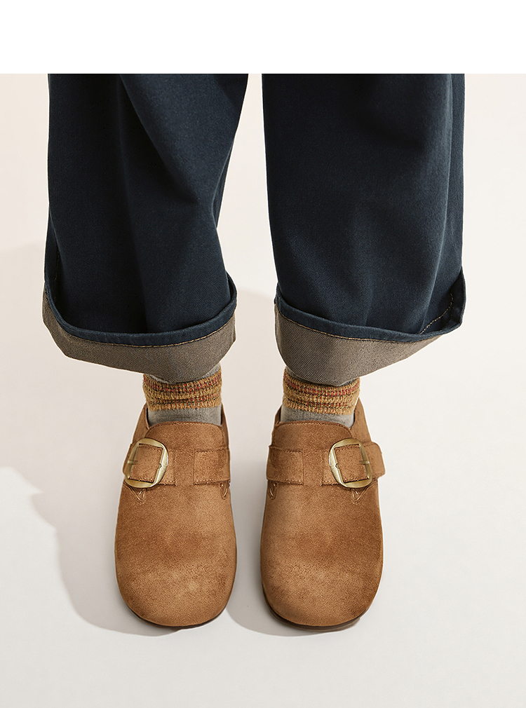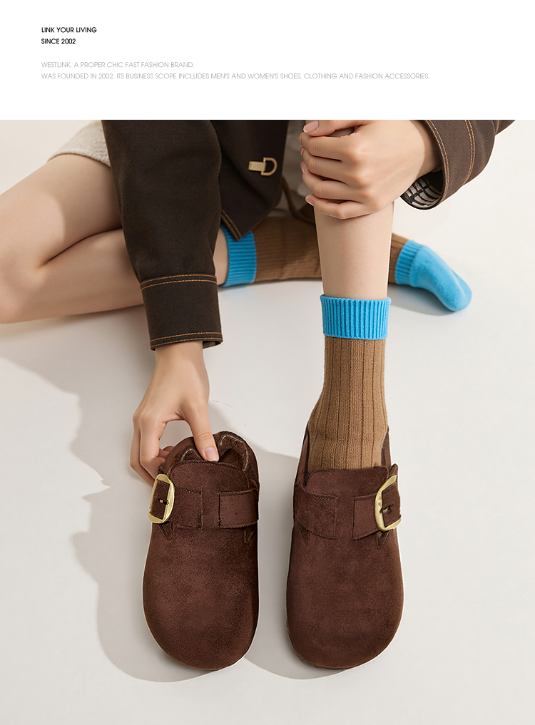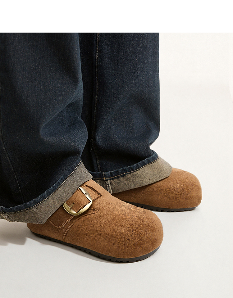 西遇加绒勃肯鞋女新款冬季保暖内增高一脚蹬棉鞋外穿毛毛鞋V2257287