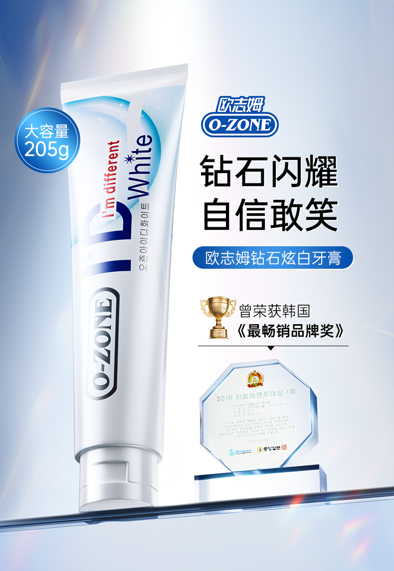 o-zone欧志姆牙膏组合(尚洁美薄荷205g+钻石炫白薄荷205g)