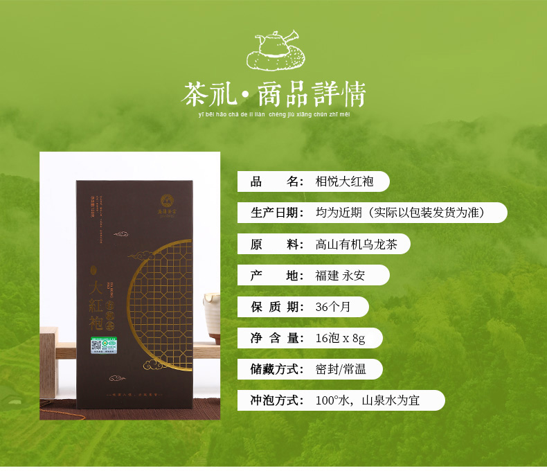 有机大红袍 128g/盒/16泡 相悦支持自提