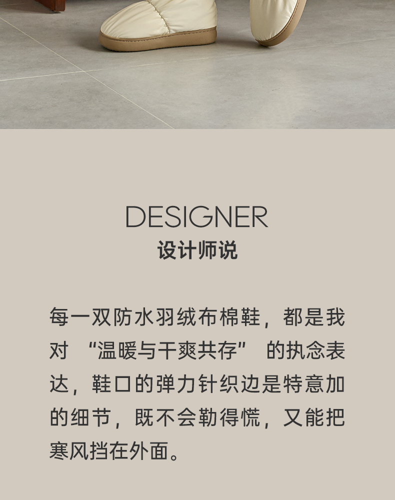 优调 聚暖包棉鞋 UDT1450 防溅水羽绒布,户外轻松踏雨雪;弹力针织鞋口,更好锁温;高帮鞋身,温暖包裹至脚踝;鞋底加深纹理,耐磨不易打滑