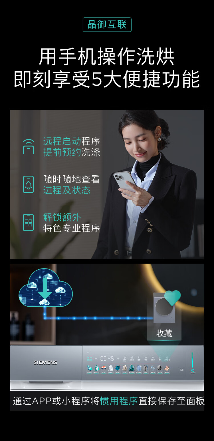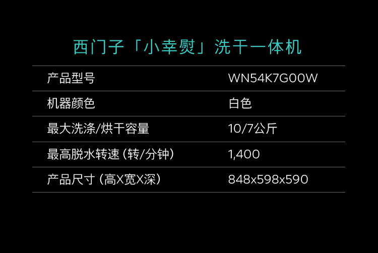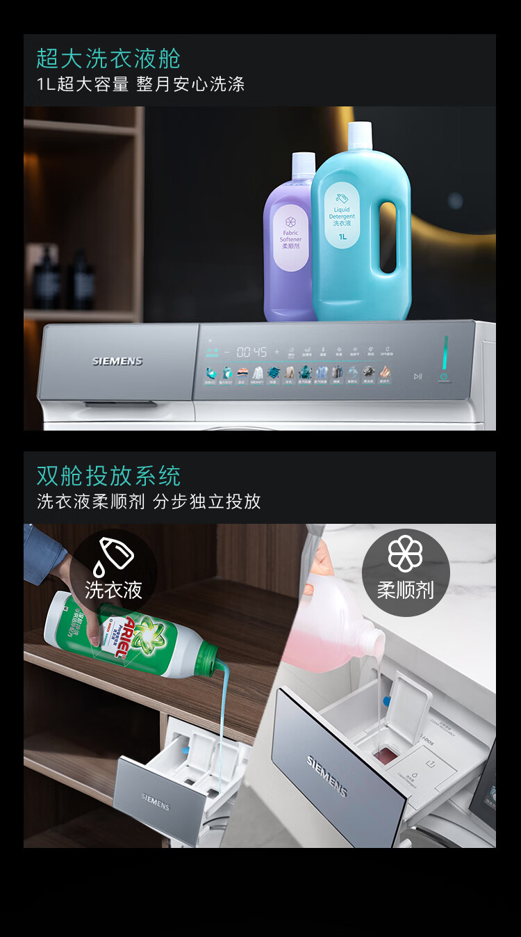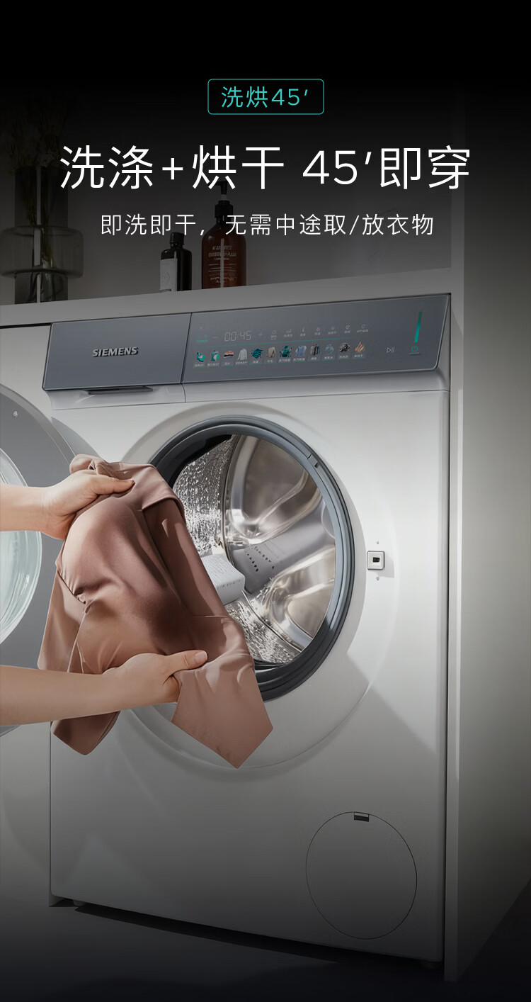西门子(SIEMENS)iQ500小幸熨滚筒洗衣机套装/洗脱/洗烘一体10公斤大容量超氧空气洗1400转全自动1.1洗净比蒸汽除皱 【洗烘一体】高奢-重磅新品丨WN54K7G00W
