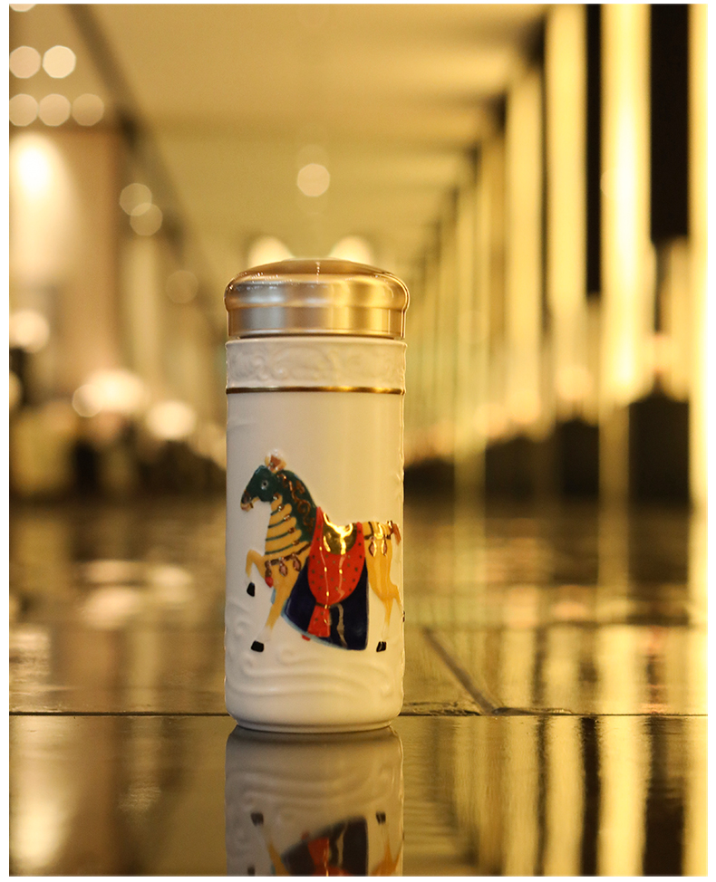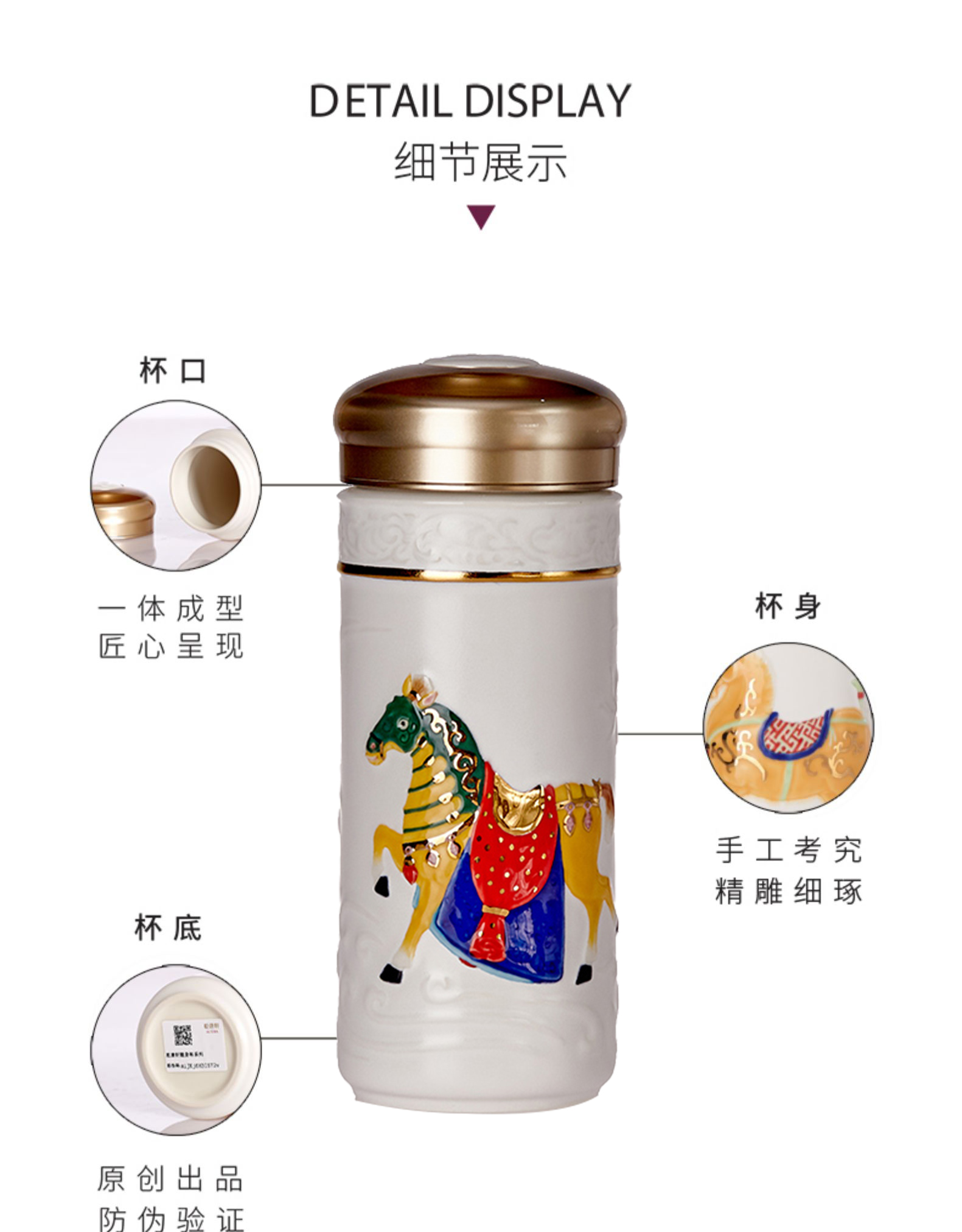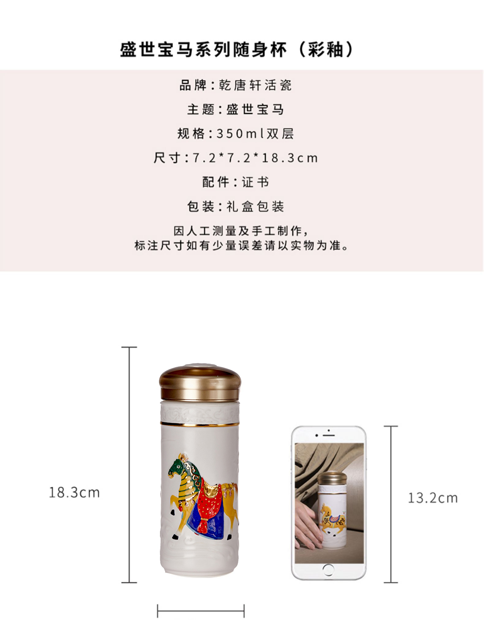 盛世宝马乾唐轩活瓷随身复古商务送礼品定制随行手陶瓷水杯子便携
